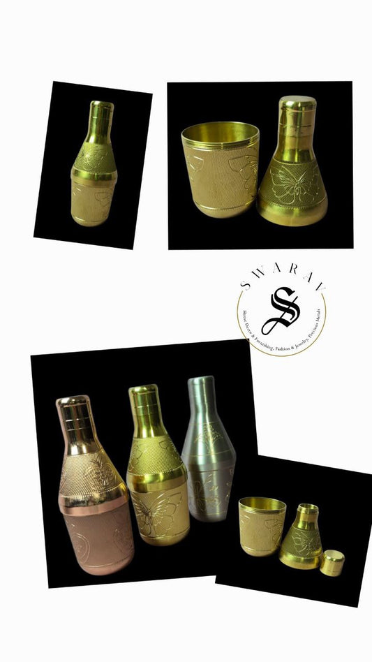 Pure Brass designer multi utility Mini bottles with beautiful engraving. (Set of 3 )Size : 6 inch