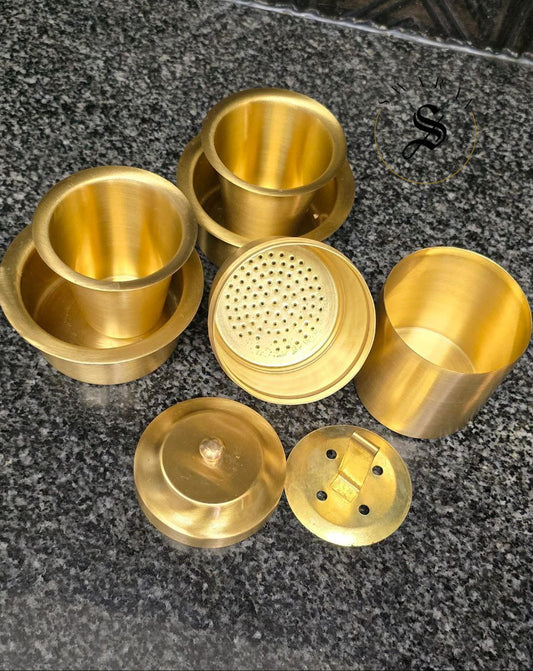 Pure Brass Set of 3, matt finish Indian Coffee filter and Dabara set. ( 2 sets of Dabara and 1 Coffee filter)