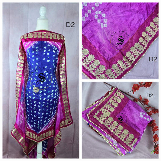 Silk Fabric Gota Patti border and hand Bandhni Dupatta. Length - 2.25 meters