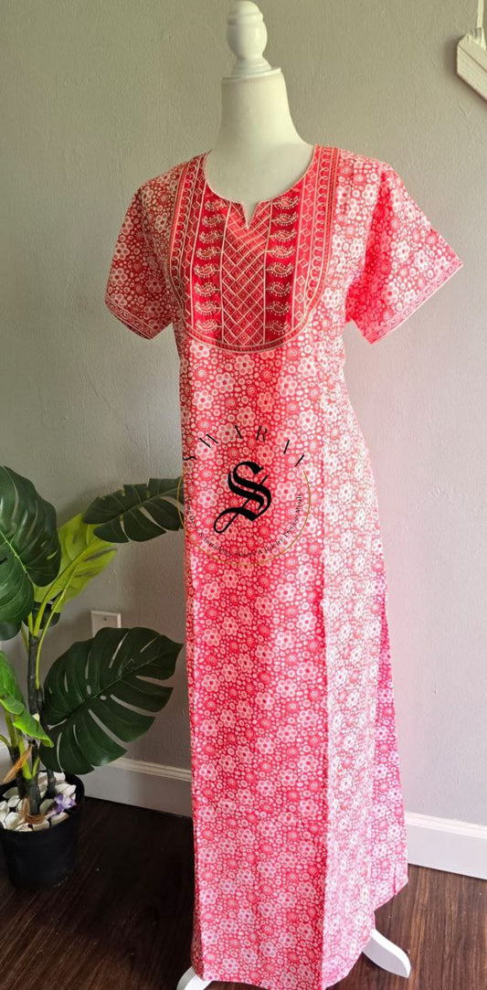 Pack of 2 Pure Jaipur Cotton Women's Nighty / long gown/ Indian nighty. Size - L. Best fit up to XL