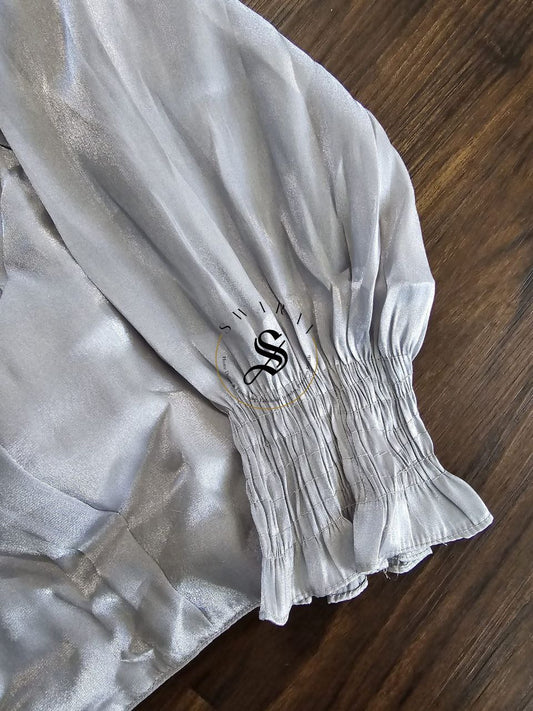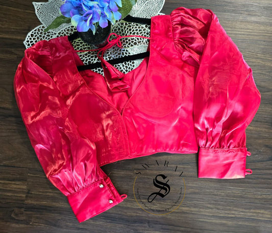 Ready to wear Satin silk puffed full sleeve Blouse with smocking pattern. Size : 38 ready to wear with margin up to 40.