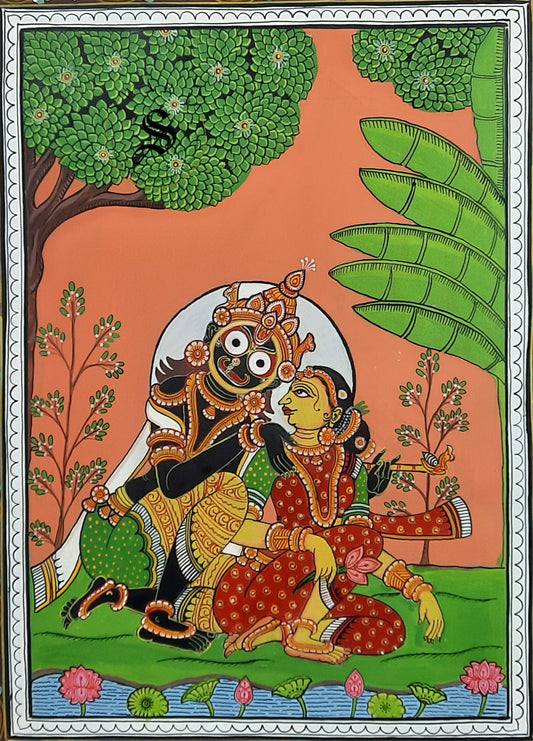 Hand made Pattachitra painting on silk fabric. Lord Jaggannath and Maa Lakshmi. Size 12 by 16 inch