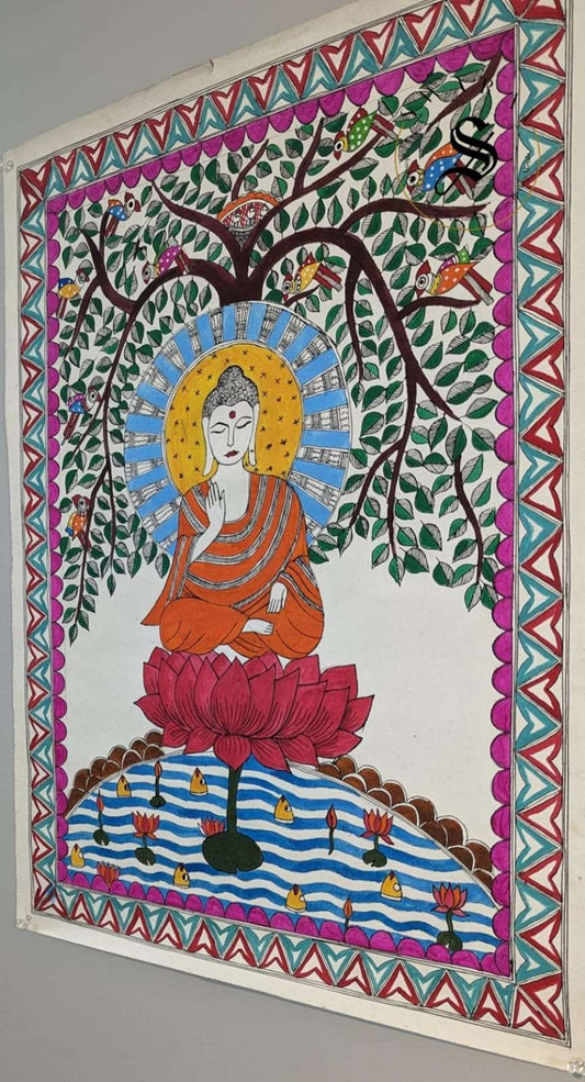 Madhubani or Mithila Painting - Gautam Buddha under Peepal or Ficus religiosa Tree Them
