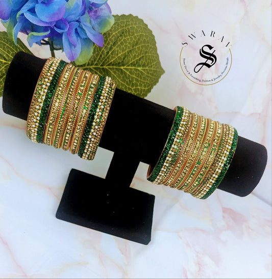Lakh ( Epoxy ) Bangles Set - ( BOTTLE GREEN)