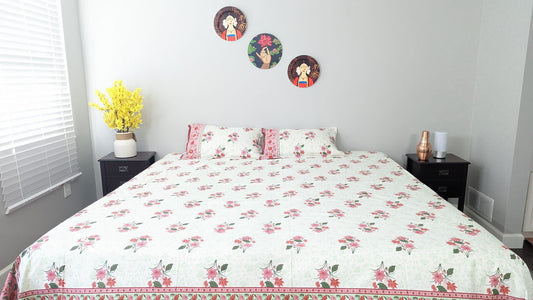 Jaipur Pure Cotton Jumbo King Size Bedsheet Set - 108 by 108 inch.
