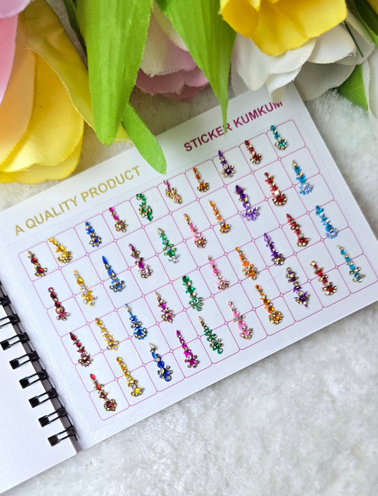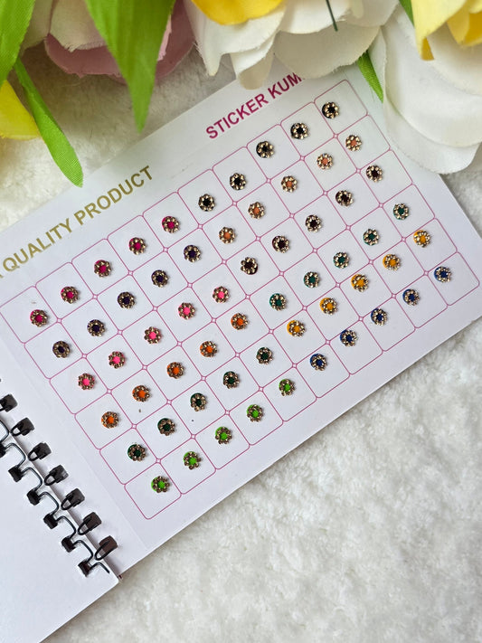 Navya - 300 count stone border multi color and size fancy spiral bindi book.