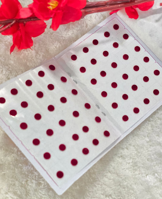 Box of 12 cards- 36 plain bindi on each card. Color - Maroon. @$0.66 each.