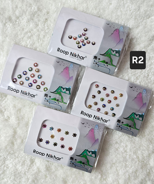 RoopNikhar pack of 4 fancy bindi . Round shape , multicolor.