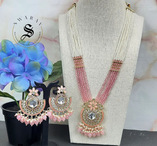 Jaipur jewelry - Long necklace/Haar in sugar beads and Kundan pendant with matching earrings.