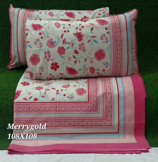 King size Glace Cotton Fitted sheet with 2 pillow covers.