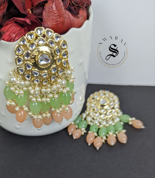 Kundan and Glass Beads Earrings -Mint & Peach.