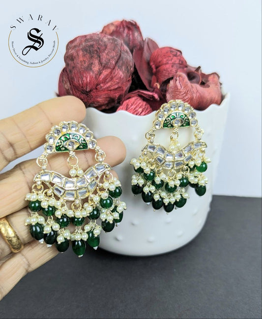 Kundan and Beads Danglers - Green.