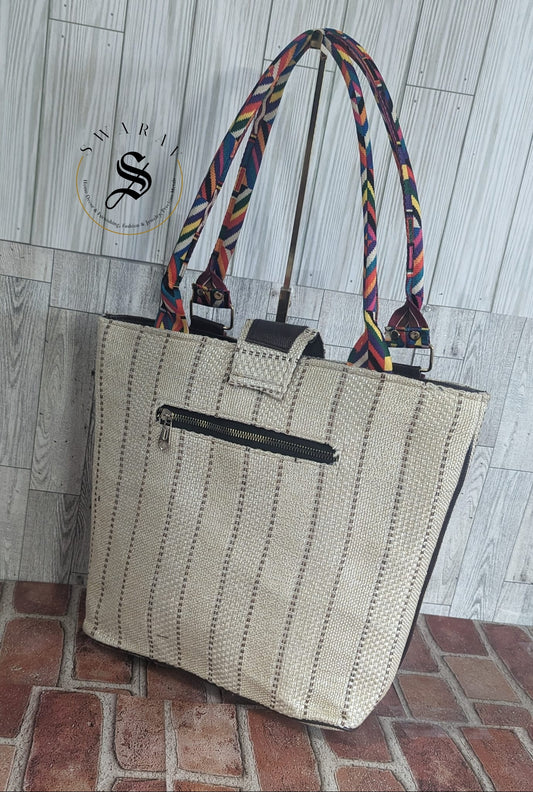 FREE SHIPPING π Women's Jute Tote Bag. Color - Off White. Size: 13 by 14 by 5 inch.