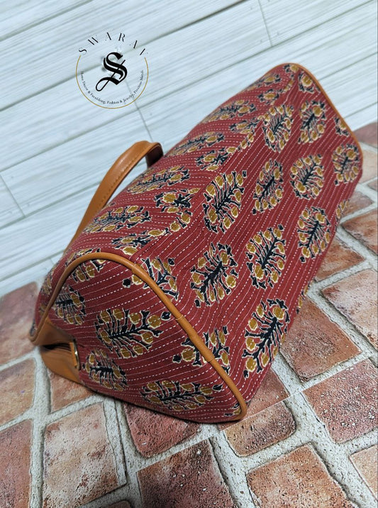 FREE SHIPPING 🚚 Women's Jaipur Block print Fabric classic Big Tote Bag - Brick Red