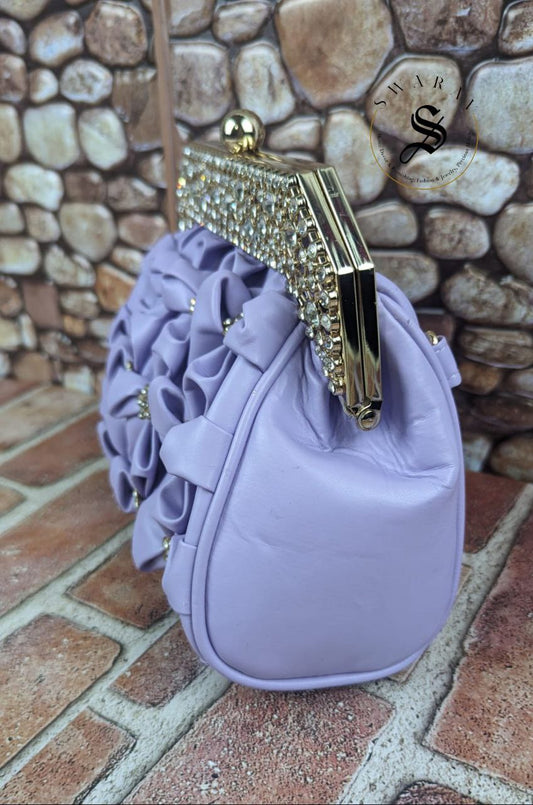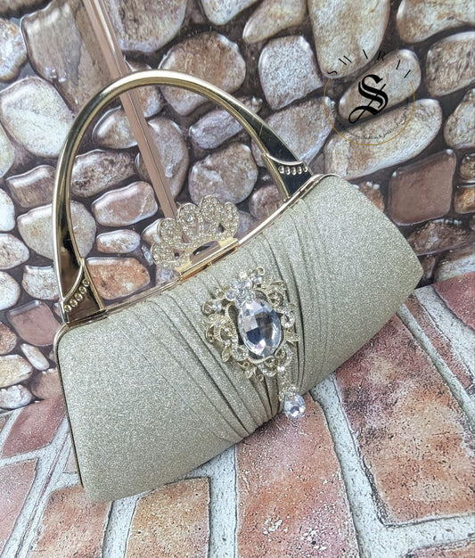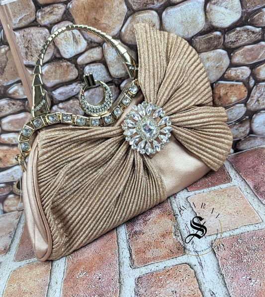 Faux Leather Side Bow Party Clutch -Gold Color.