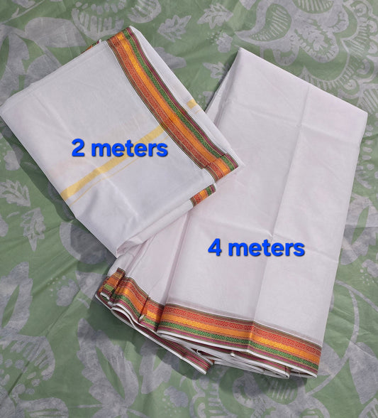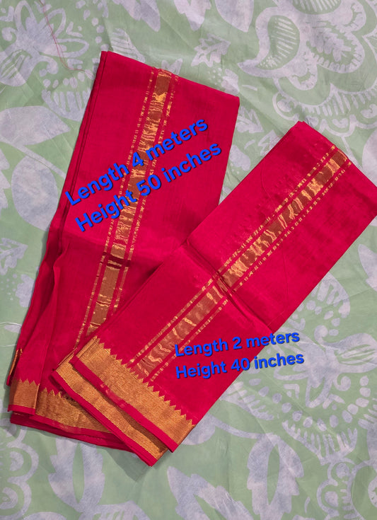 Men's pure cotton Angavastram and Vesti set with copper zari woven border. (D2). Total length for the set - 7 meters.