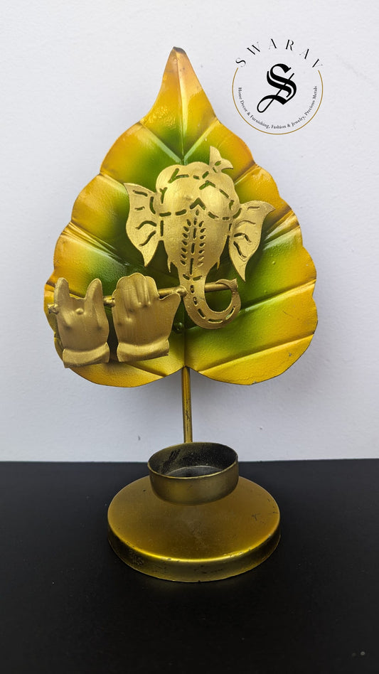Iron Leaf Flute Ganesha Table/Shelf Tea light stand.