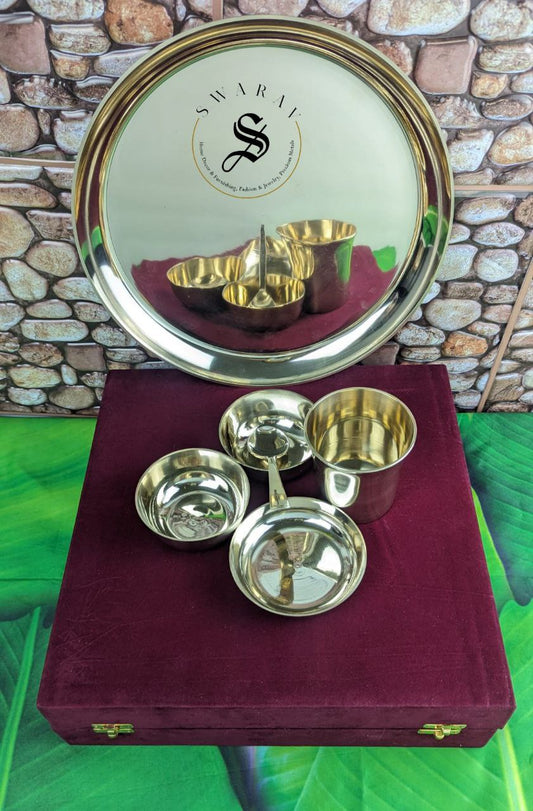 Set of 6 - Bronze / Kansa / Kanchu Dinner Set with FREE GIFT Box. Set weight - 1500 grams. ( Does not include Gift box weight )
