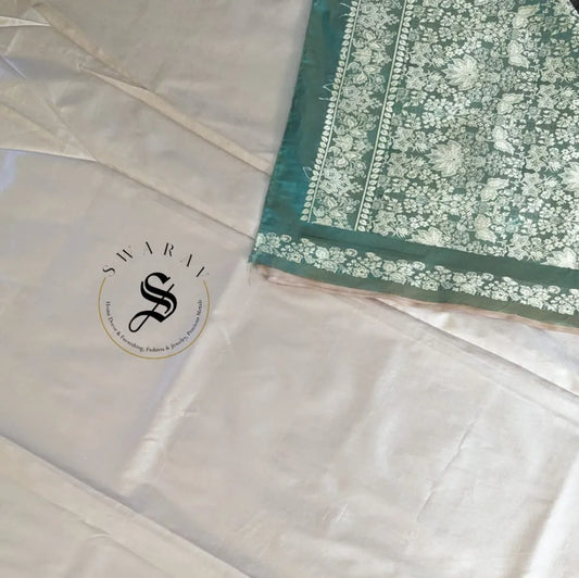 Soft Satin Silk self border Saree with grand contrast pallu and stitched blouse