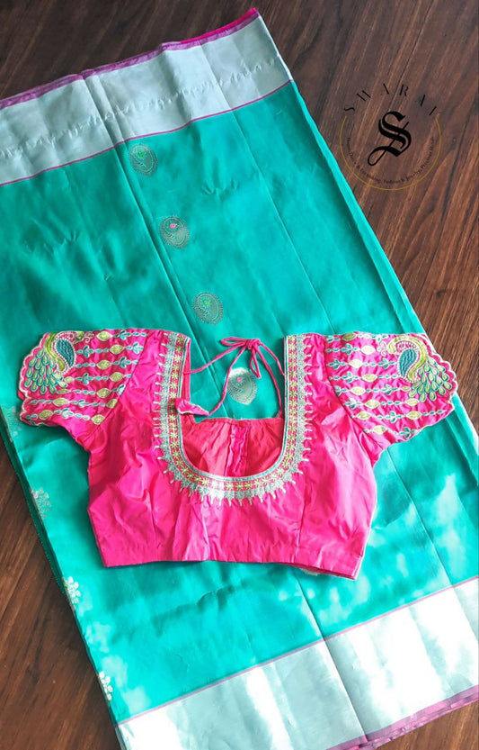 Venkatagiri Handloom pattu saree with stitched work blouse.