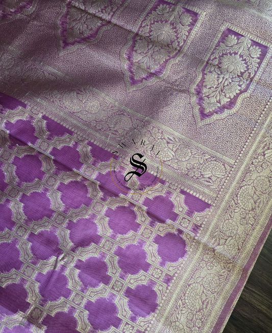 Soft Organza silk with zari woven Banarasi Jaal pattern with matching blouse piece.