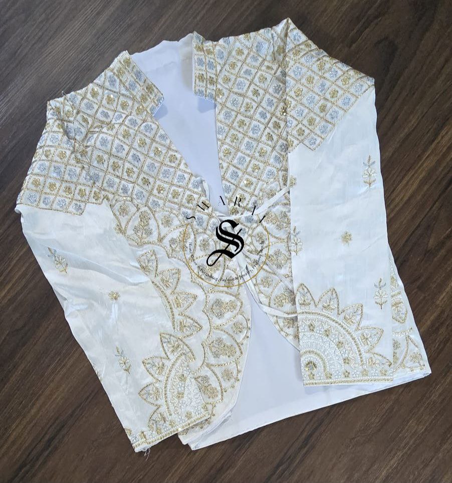 Beauful party wear 3 piece palazzo set with Rich golden zari thread work.