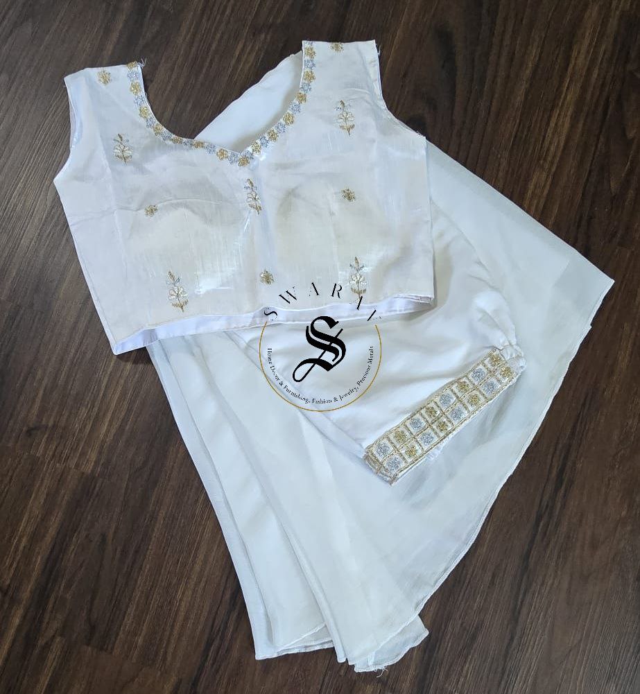 Fabric - Heavy chanderi silk with butter crape linning for Blouse and Koti. Palazzo fabric heavy Rayon with butter crape linning.