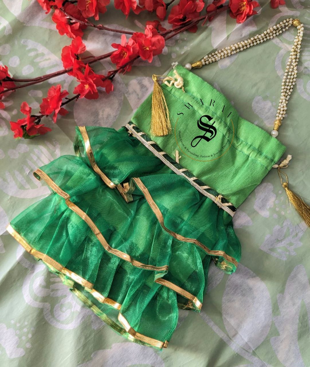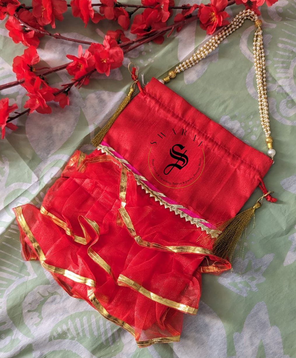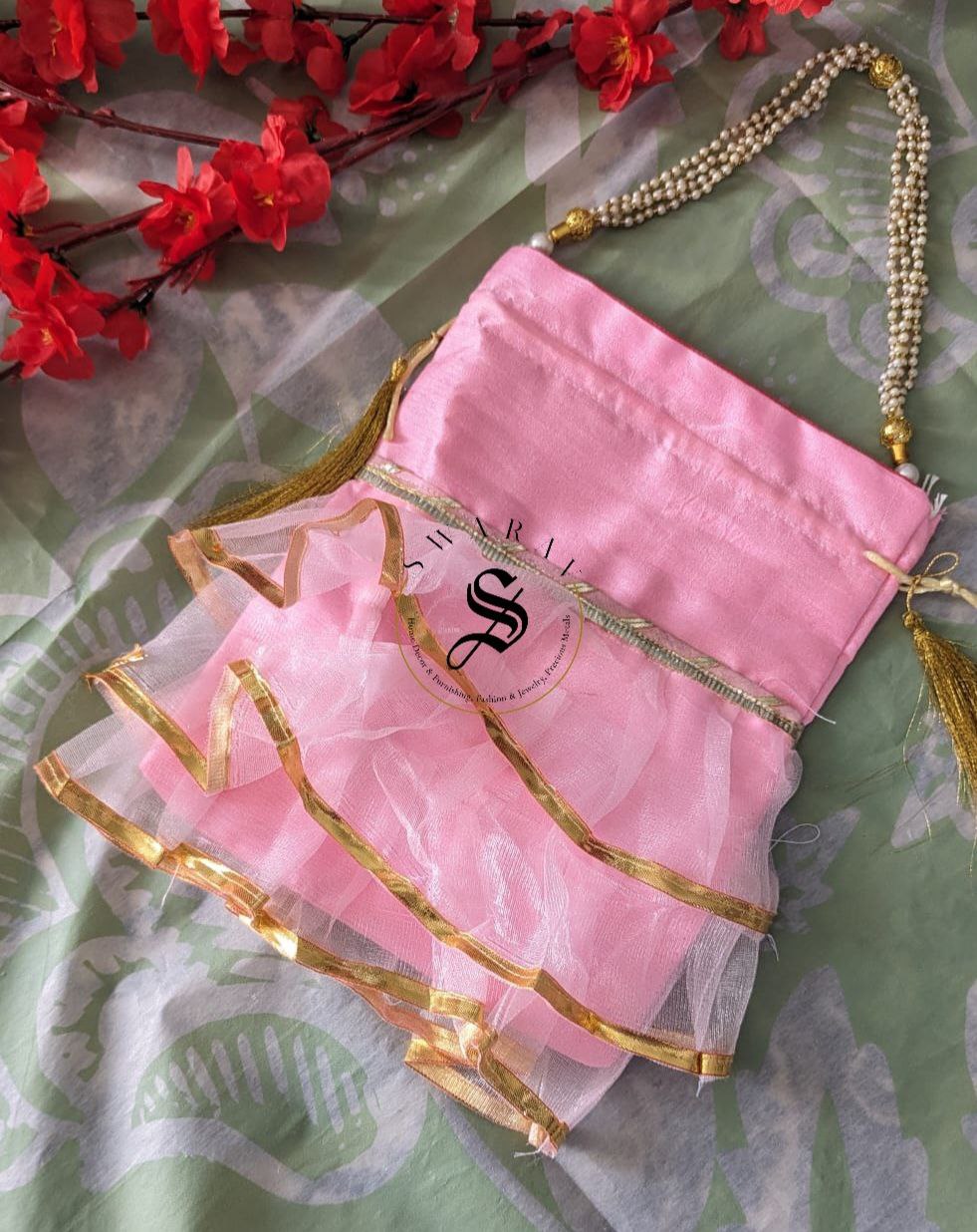 Beautiful Frill Potli or hand held pouches for your little baby doll for those little candies or her titbits, when she dresses in her ethnic attire for parties and festivals.