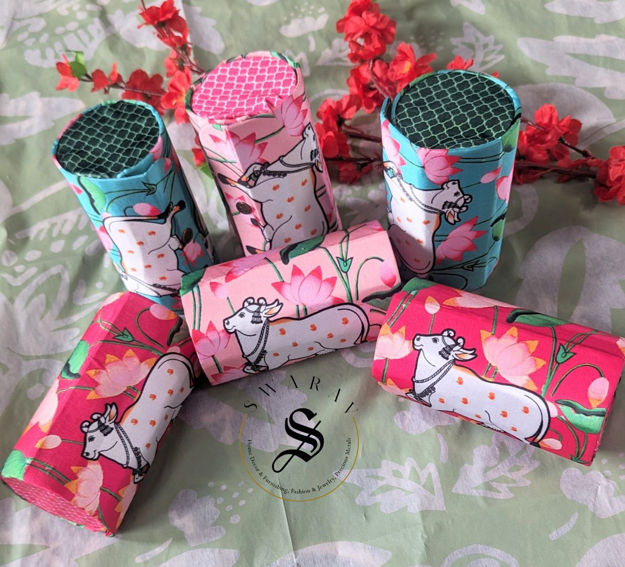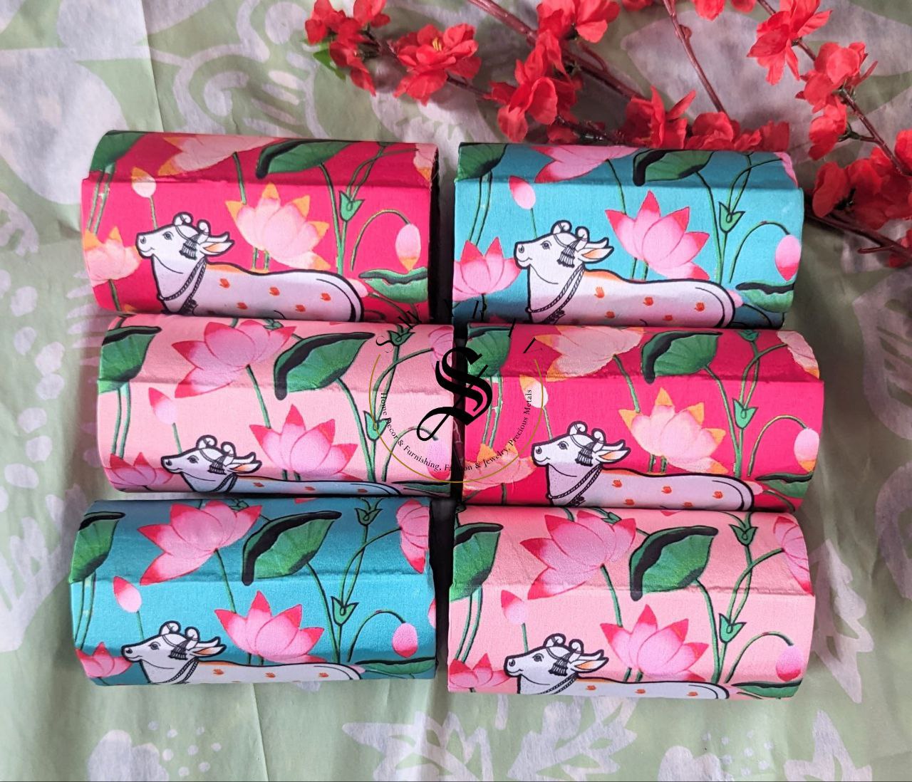 Beautiful Pichwai print fabric Bangle Boxes. Set of 6. Ideal for return gifts on weddings and other special occasions.
