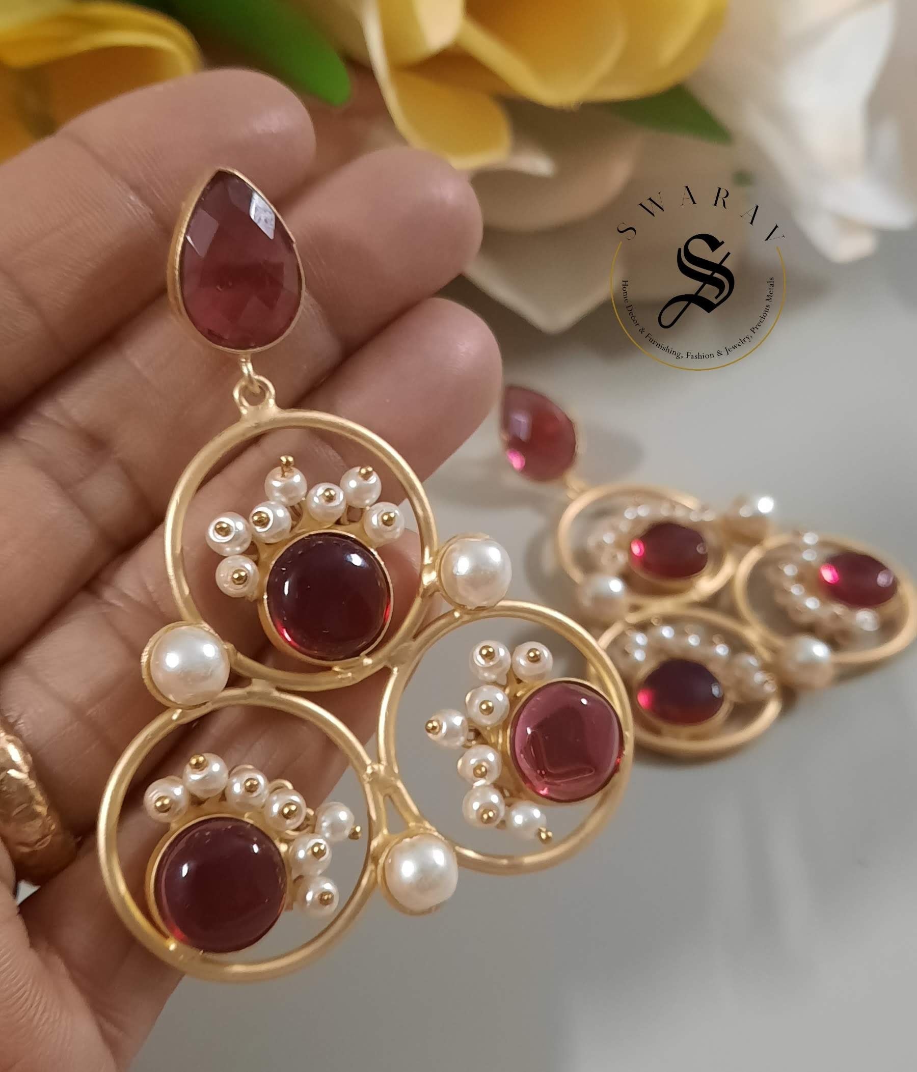 Very light weight and elegant fusion earrings , perfect for all kinds of attire and all occasions.