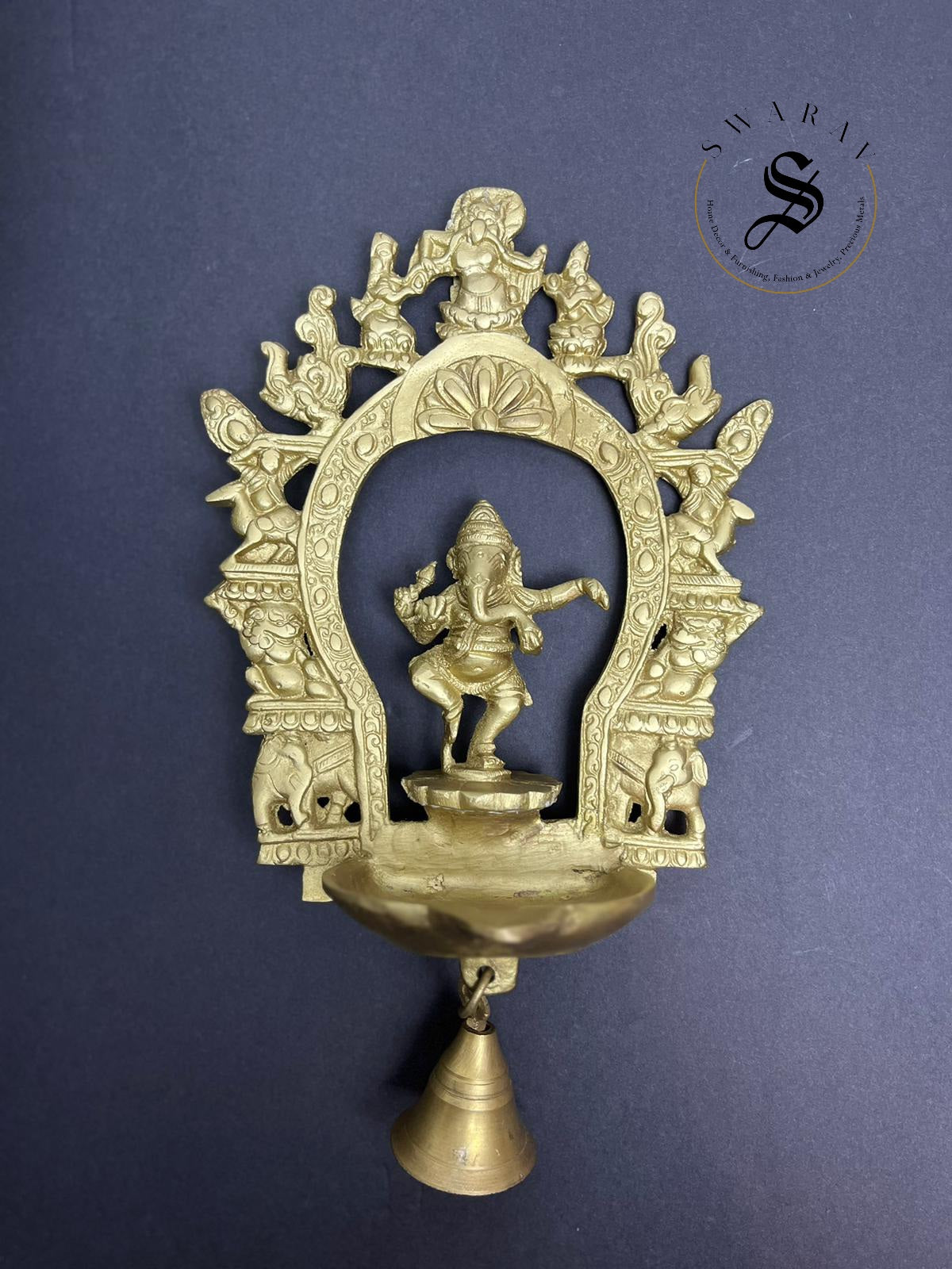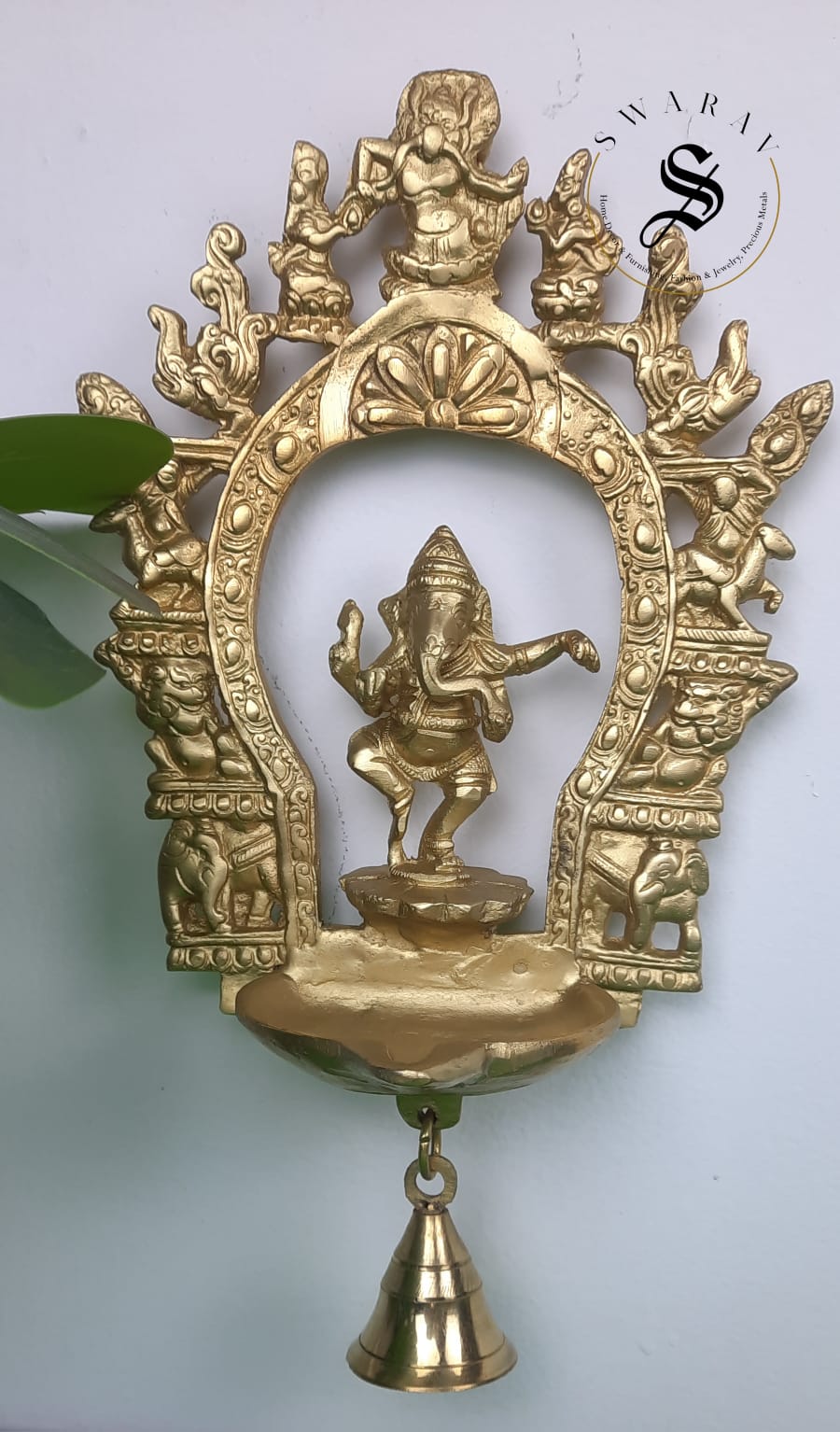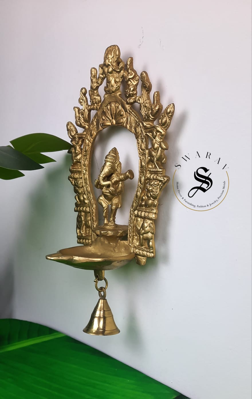Brass Dancing Ganesha Wall mount oil Lamp with Bell.