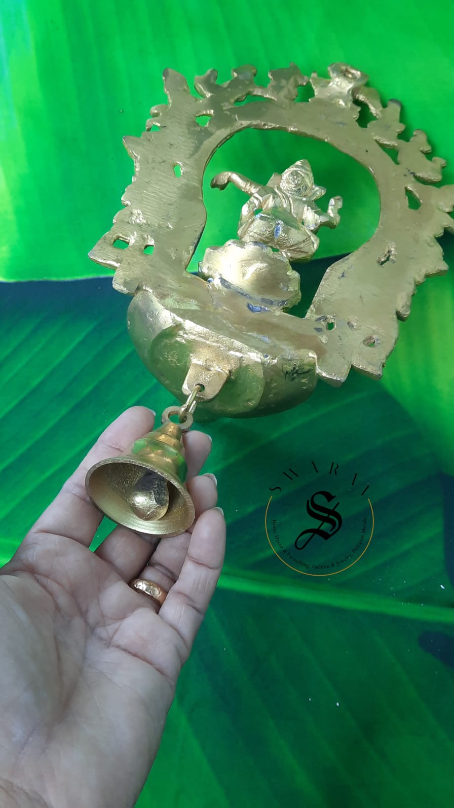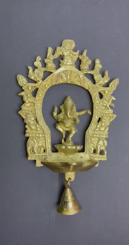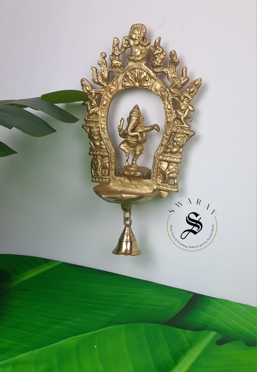 Brass Dancing Ganesha Wall mount oil Lamp with Bell.