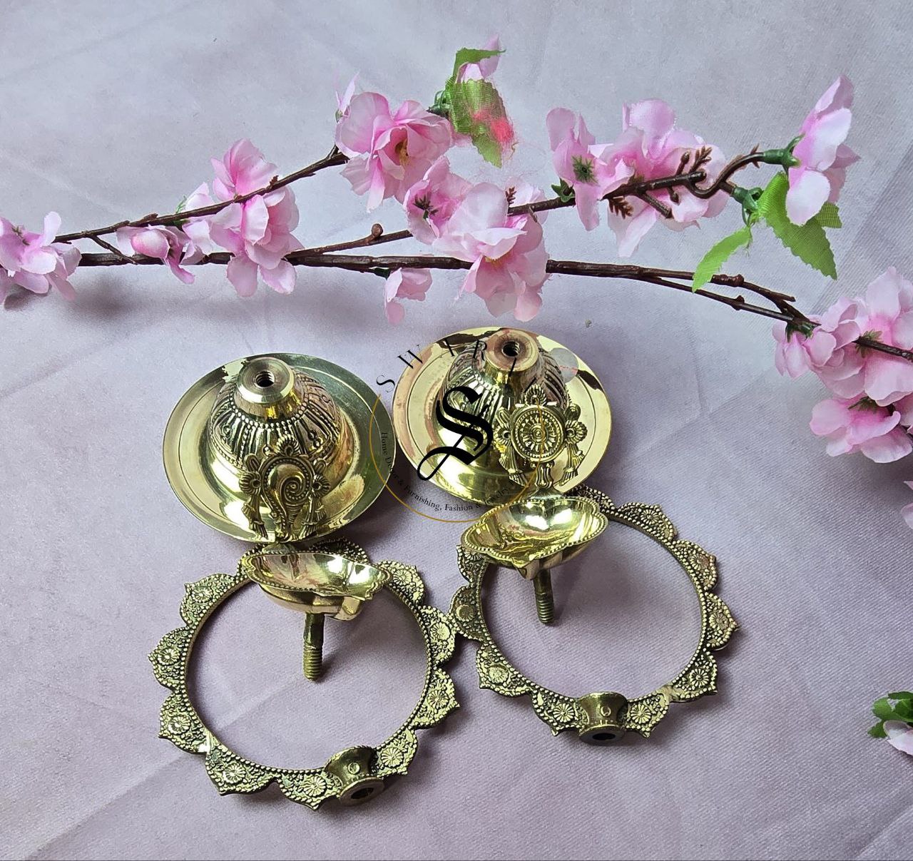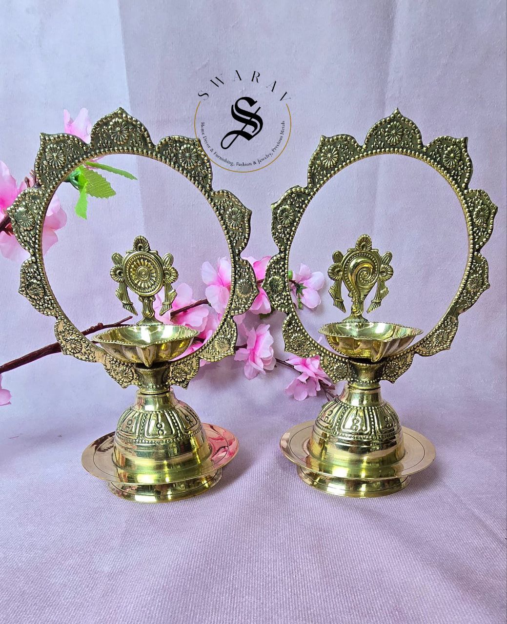 Set of 2 - Brass Sankhu chakram deepam/ diya/ oil lamp.