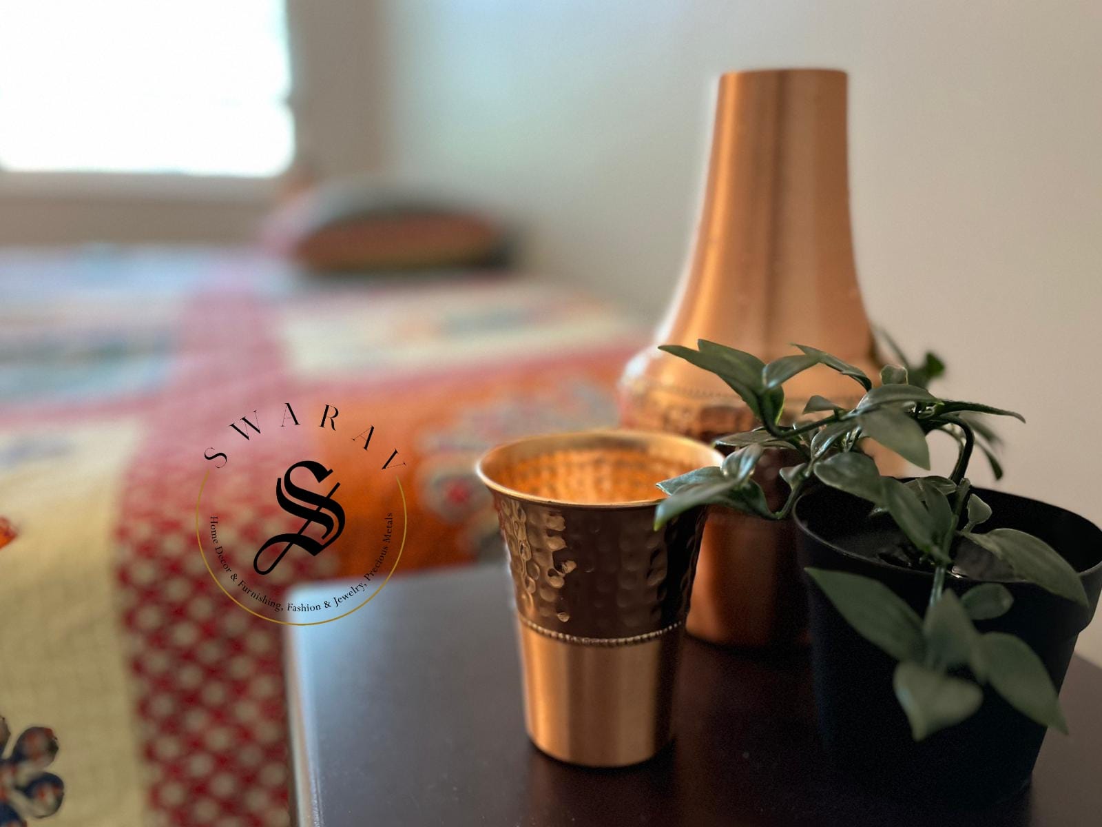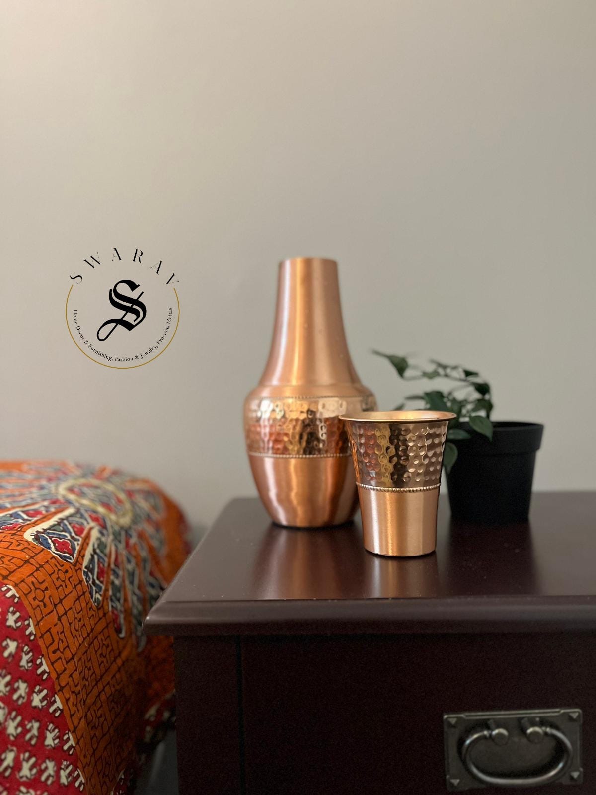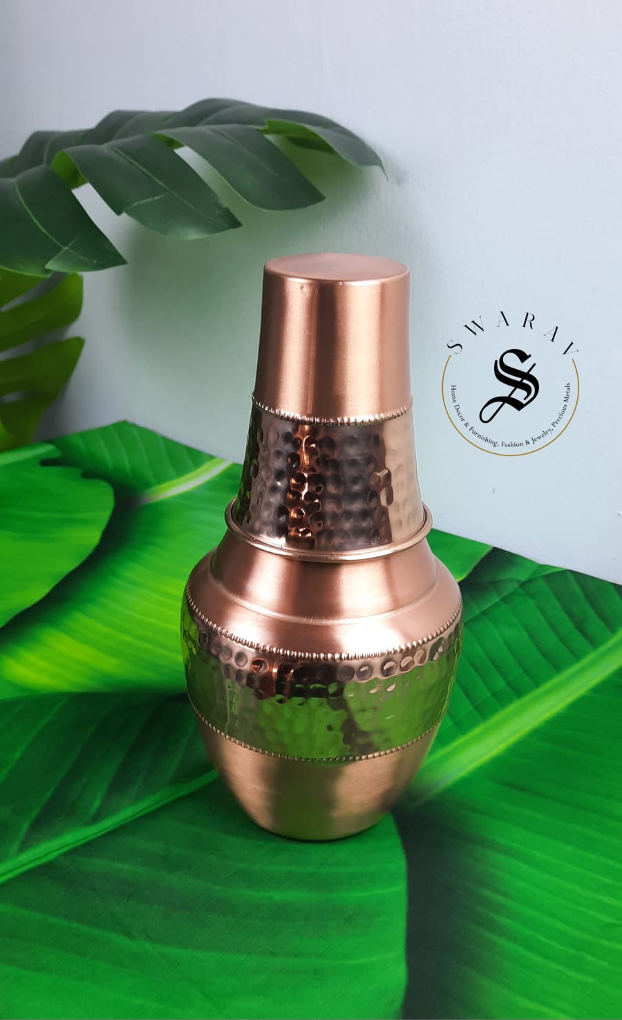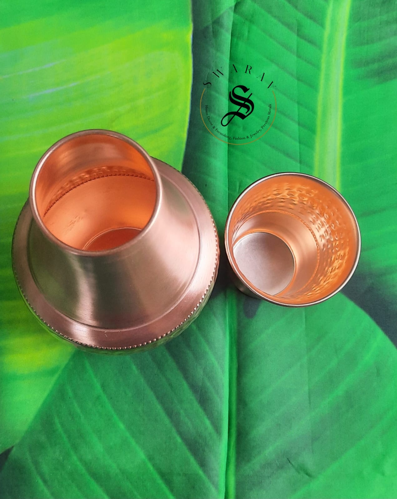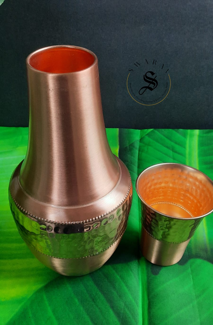 Pure Copper water Pitcher for storing and drinking water in a healthy way. Completely hand made and hand hammered beautiful design .