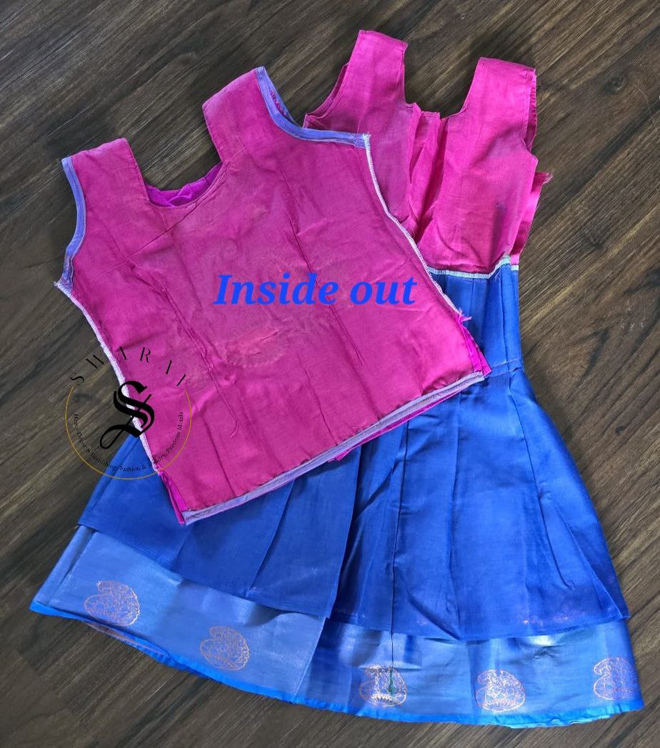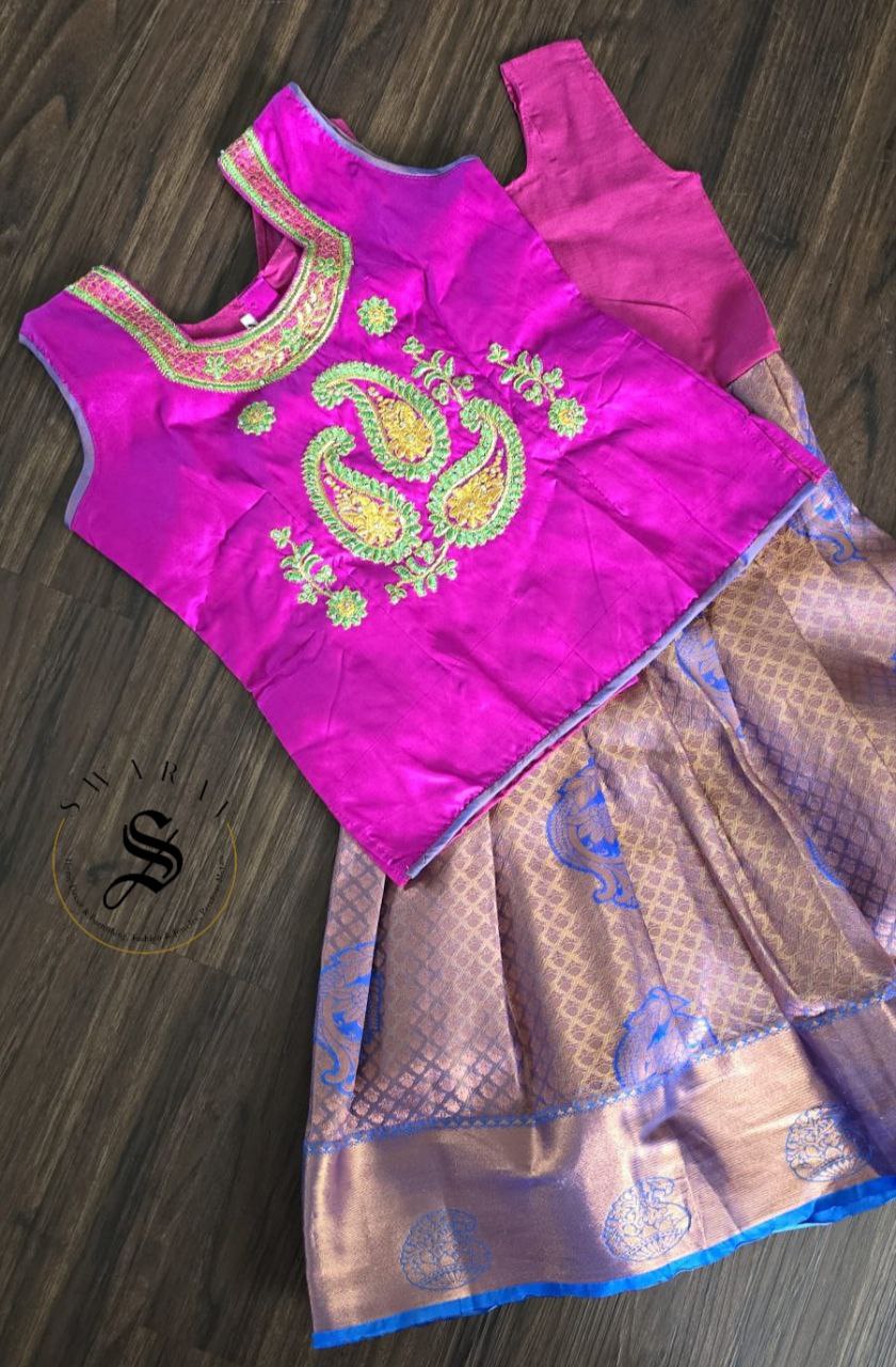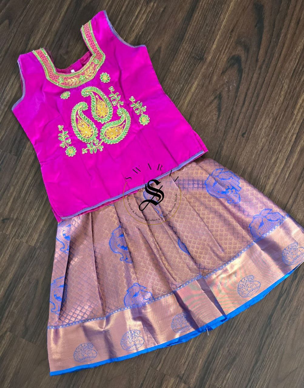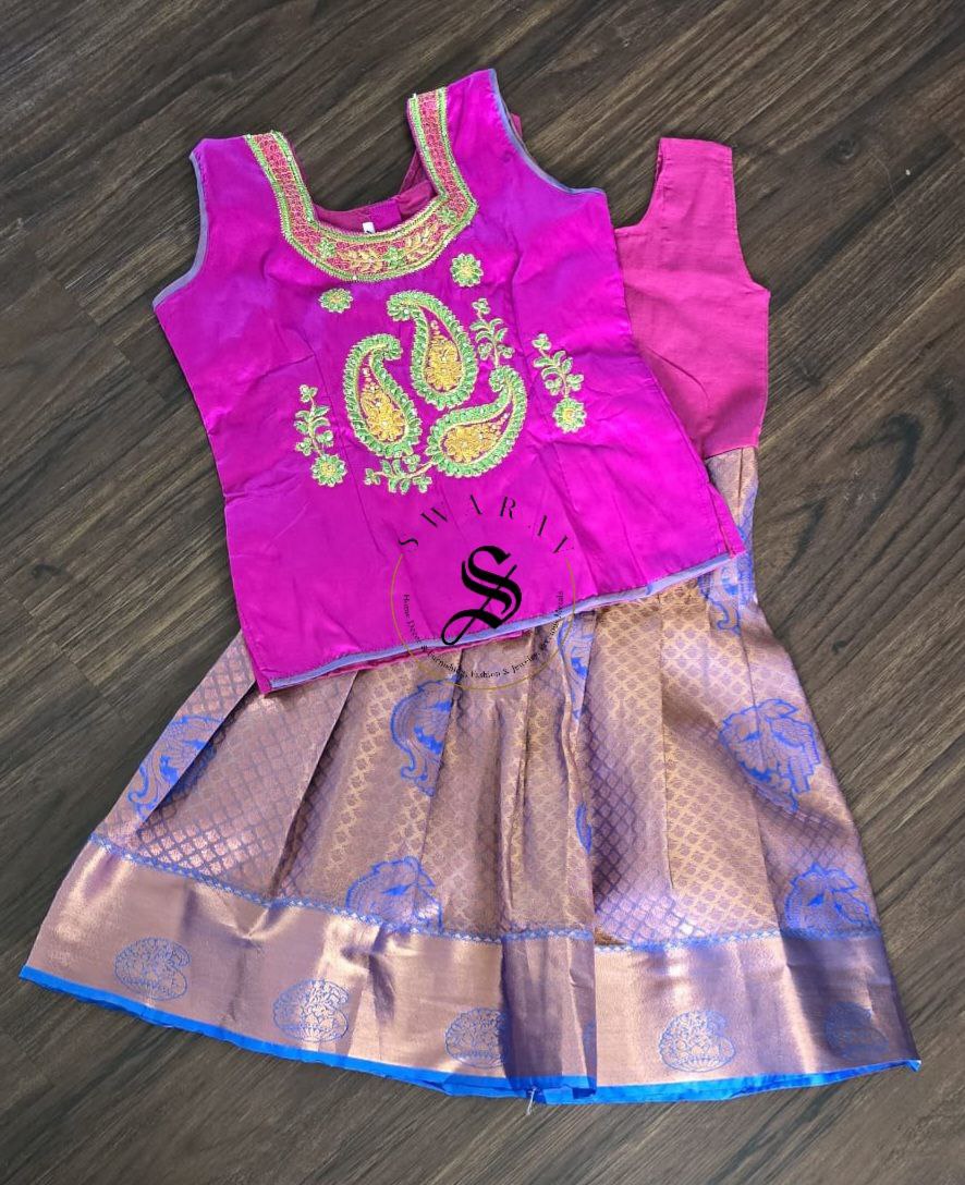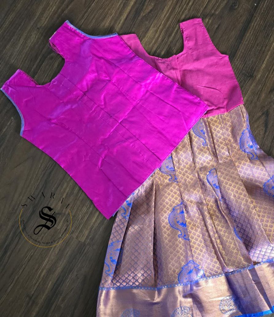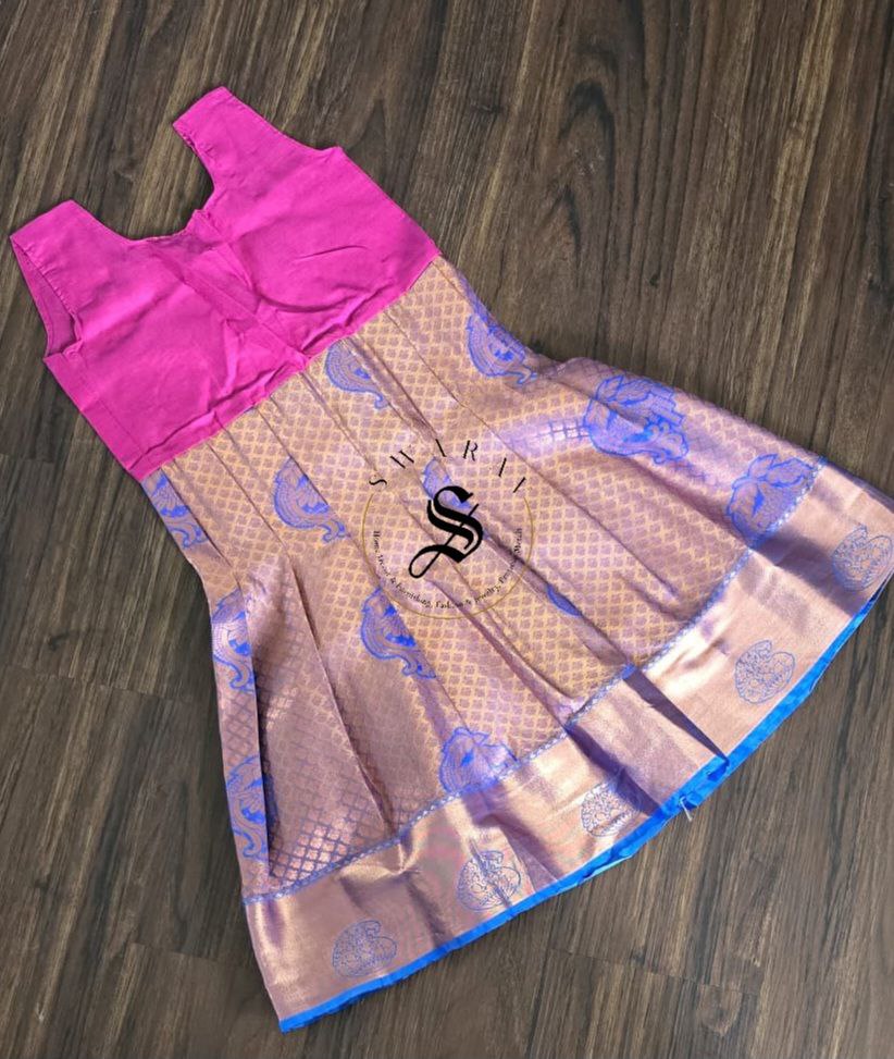 Jacquard silk Pavadai set ( Ghaghra Blouse )for Baby Girl. Color- Pink. Age - 6