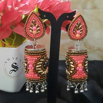 Extremely light weight cylindrical beads Jhumka with drop shape top.