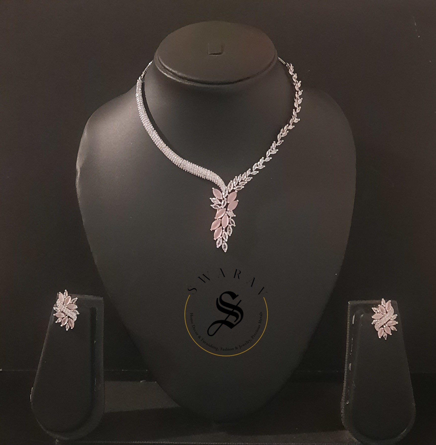 - This Beautiful Dual design CZ stone Necklace set is one of a kind and is a favorite for all those who love light weight elegant and classy Necklace sets for special wedding and party occasions.