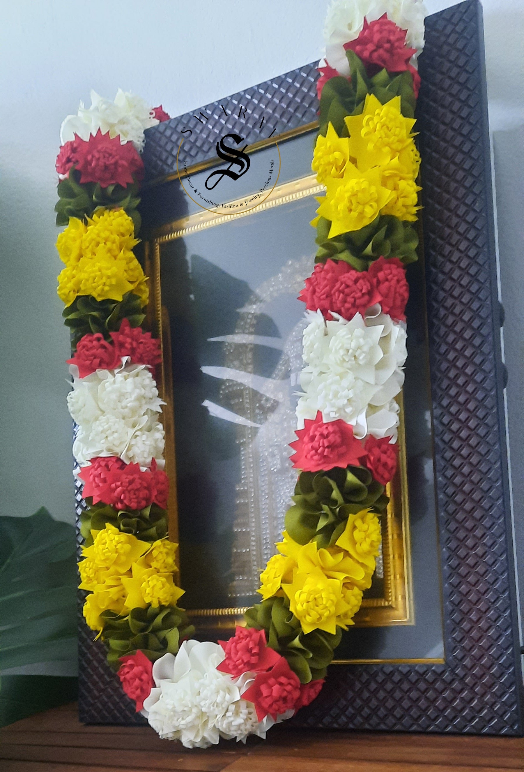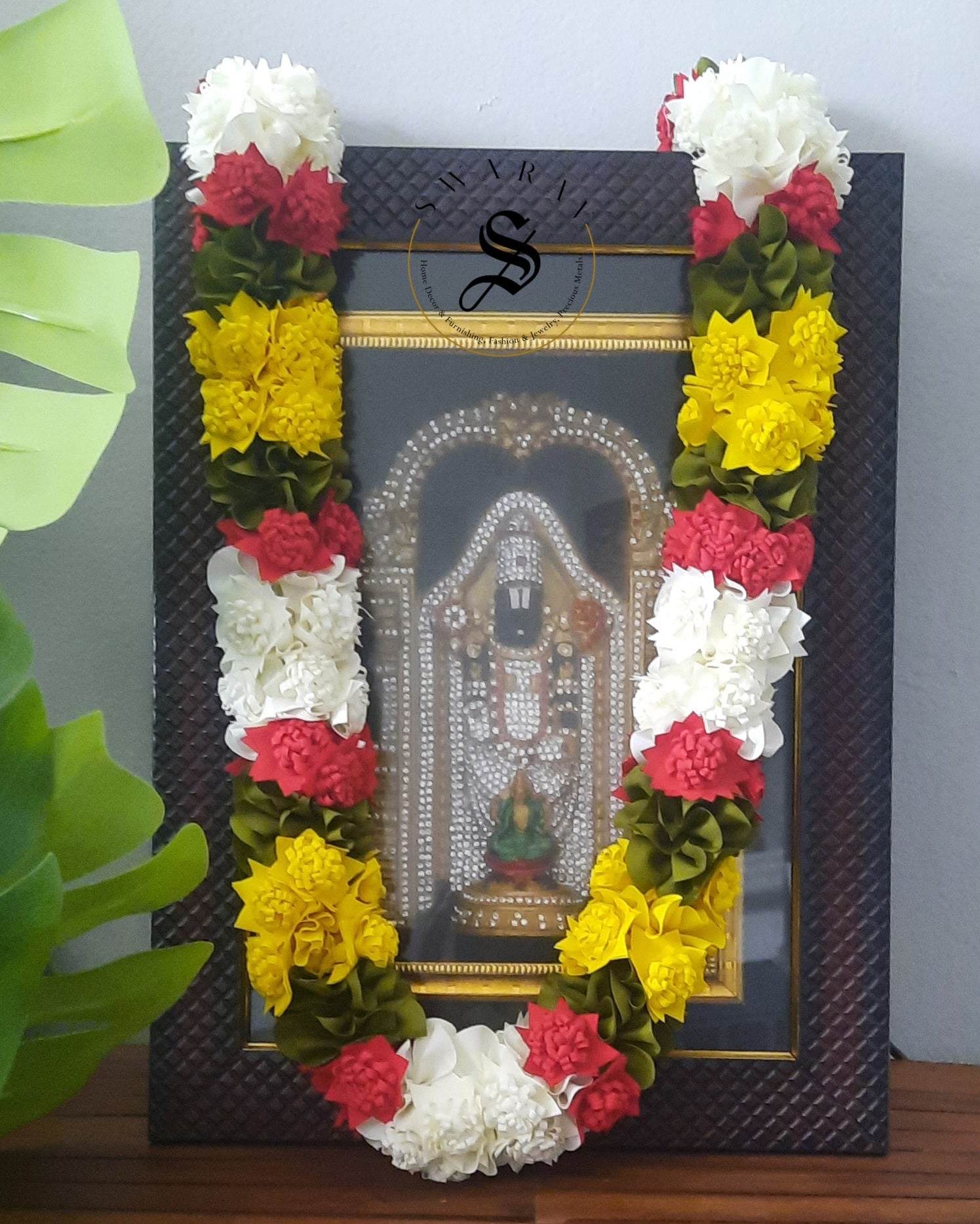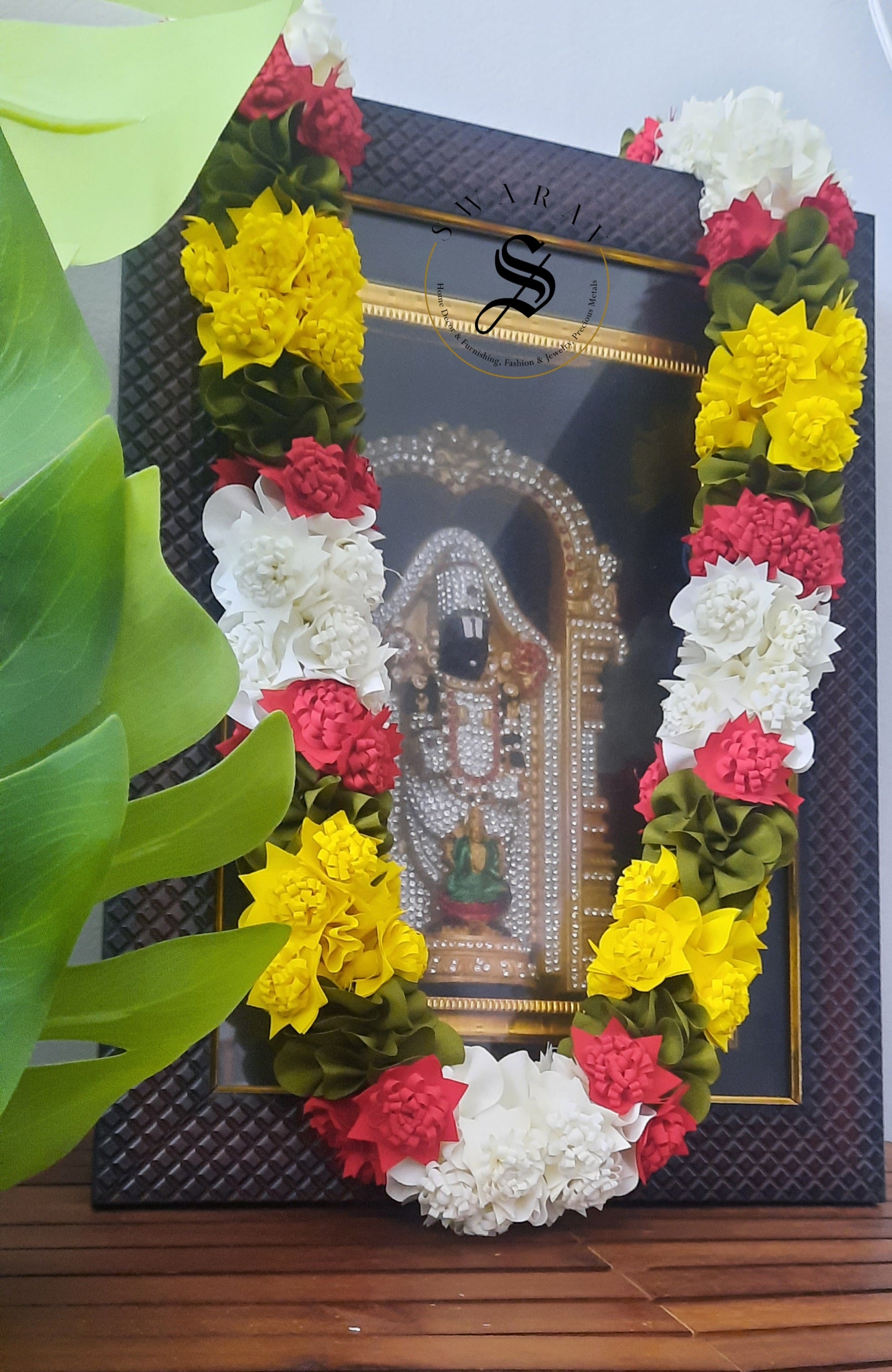Handmade with polycotton fabric, this 42 inch mala is perfect for decorating your home, idols and divine picture frames.