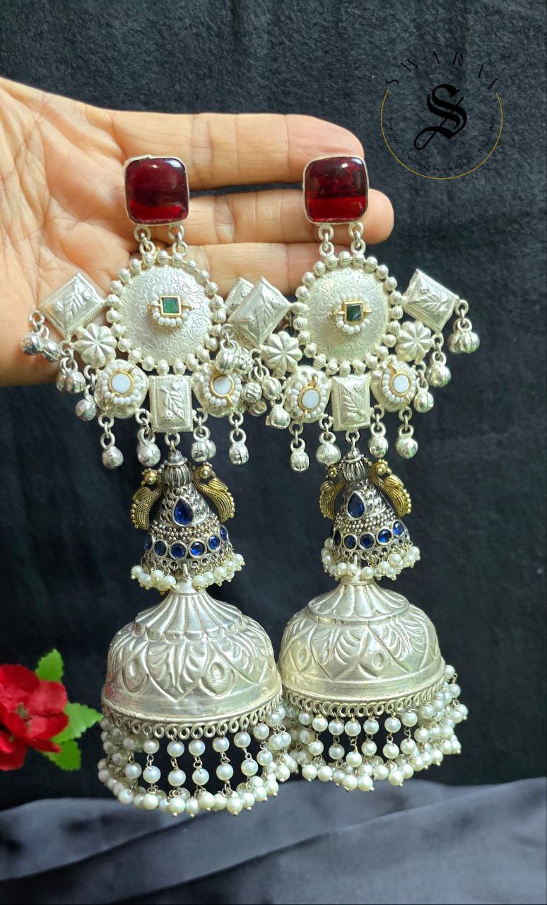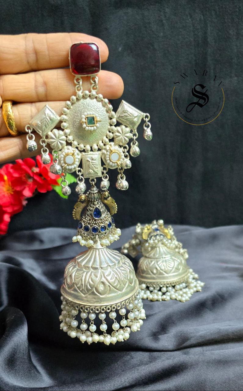 Elevate your garba look with these stunning handmade German silver Long Jhumkas!
