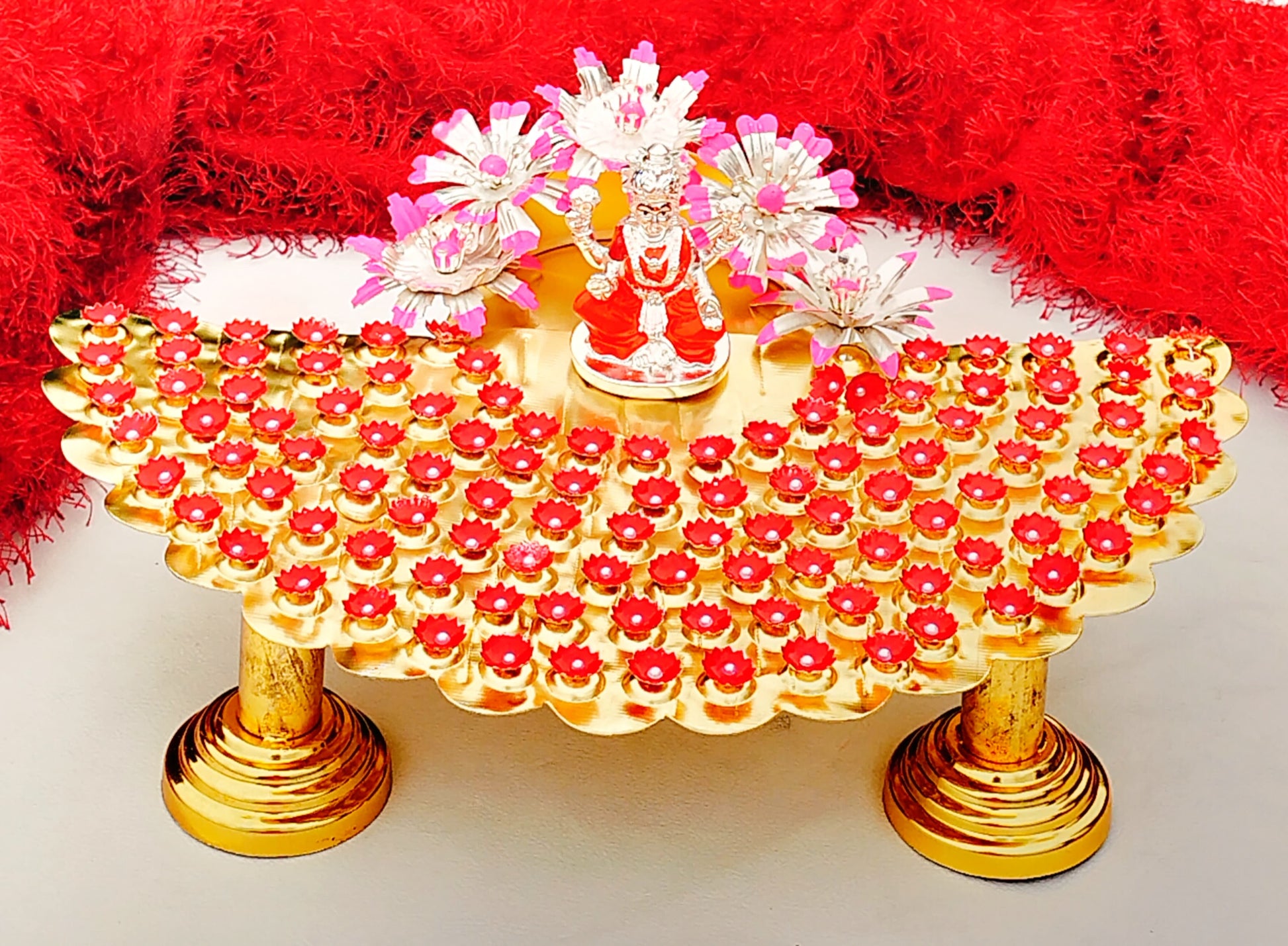 1. Detachable Exclusive design 108 hand engraving flower stand *with back rest*ensuring idol is well protected while doing rituals.