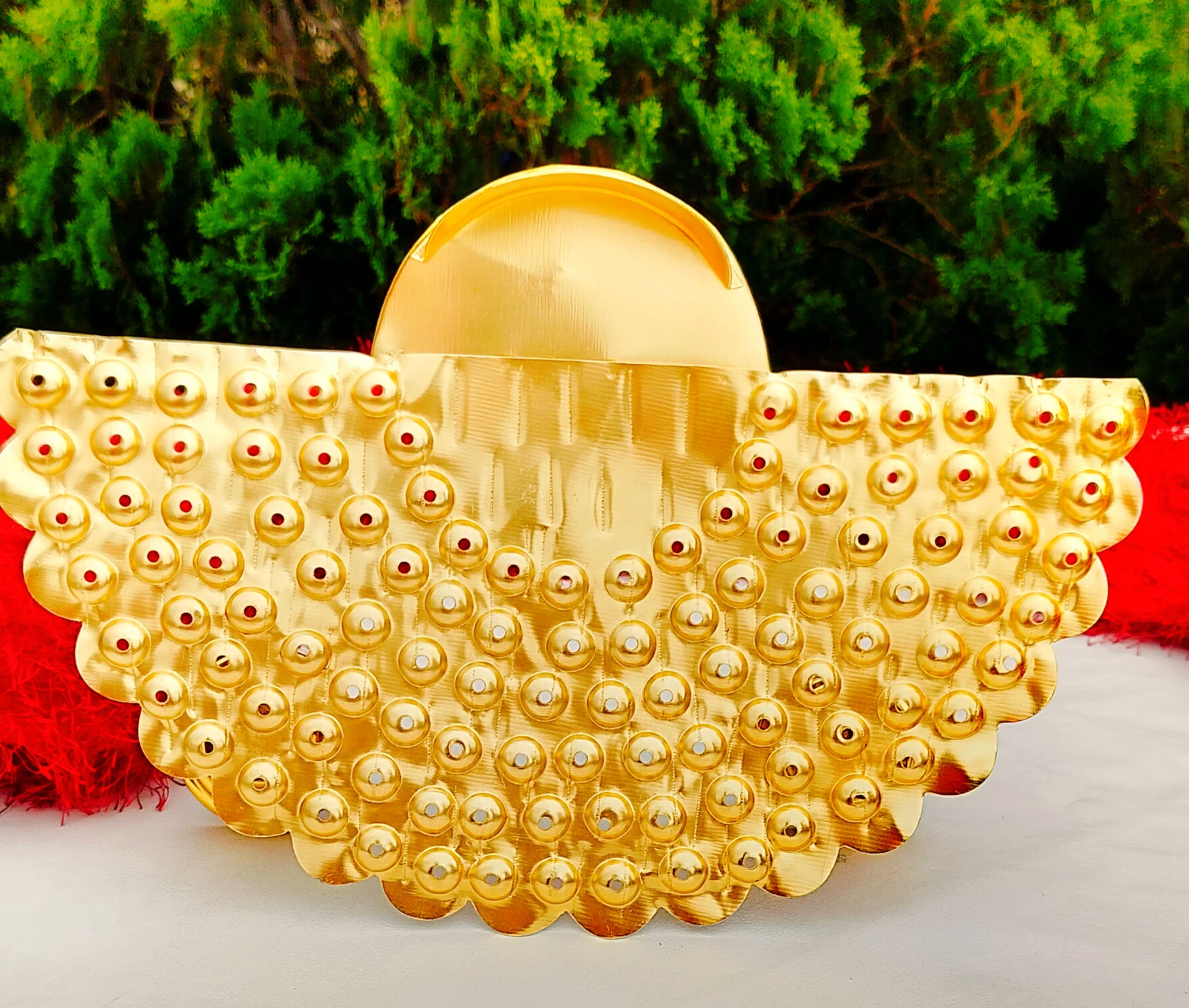 German silver GOLD PLATED Lakshmi Astottara Pooja stand with 108 small flowers, 5 big flowers and 1 Lakshmi Idol.