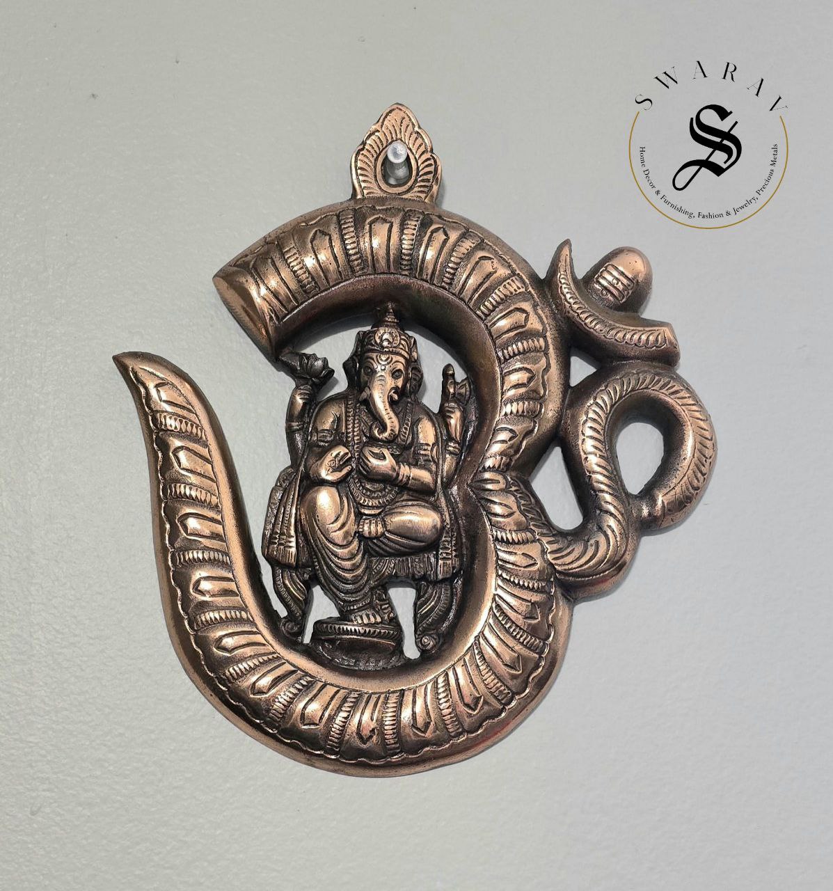 Gun metal ( Black metal/ Red Brass) Om Ganesha wall décor. Size - 9 inch.