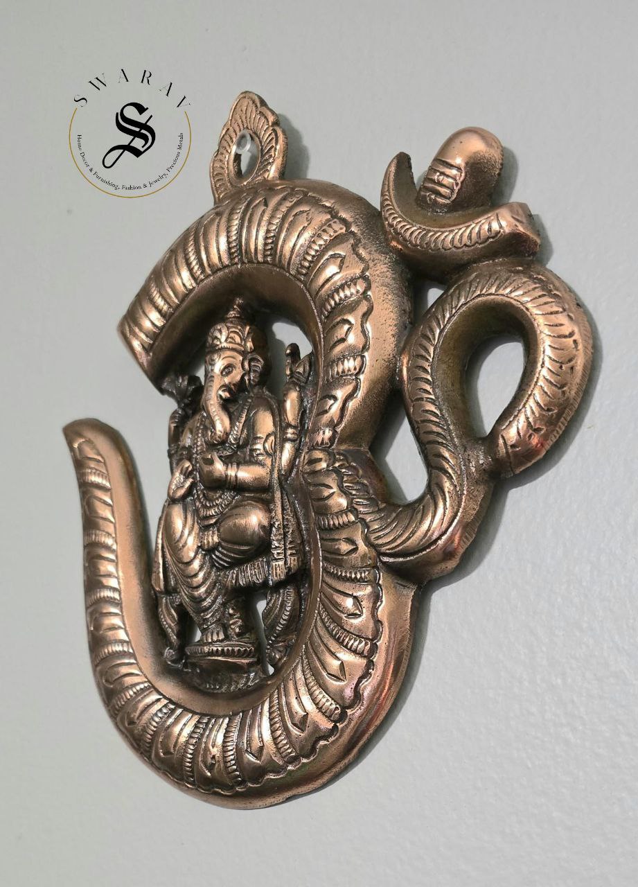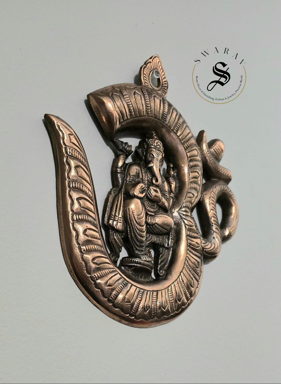 Decorate your home or office with our stunning 9 inch Om Ganesh wall décor in gun metal, an exquisite alloy of copper, tin, and zinc.
