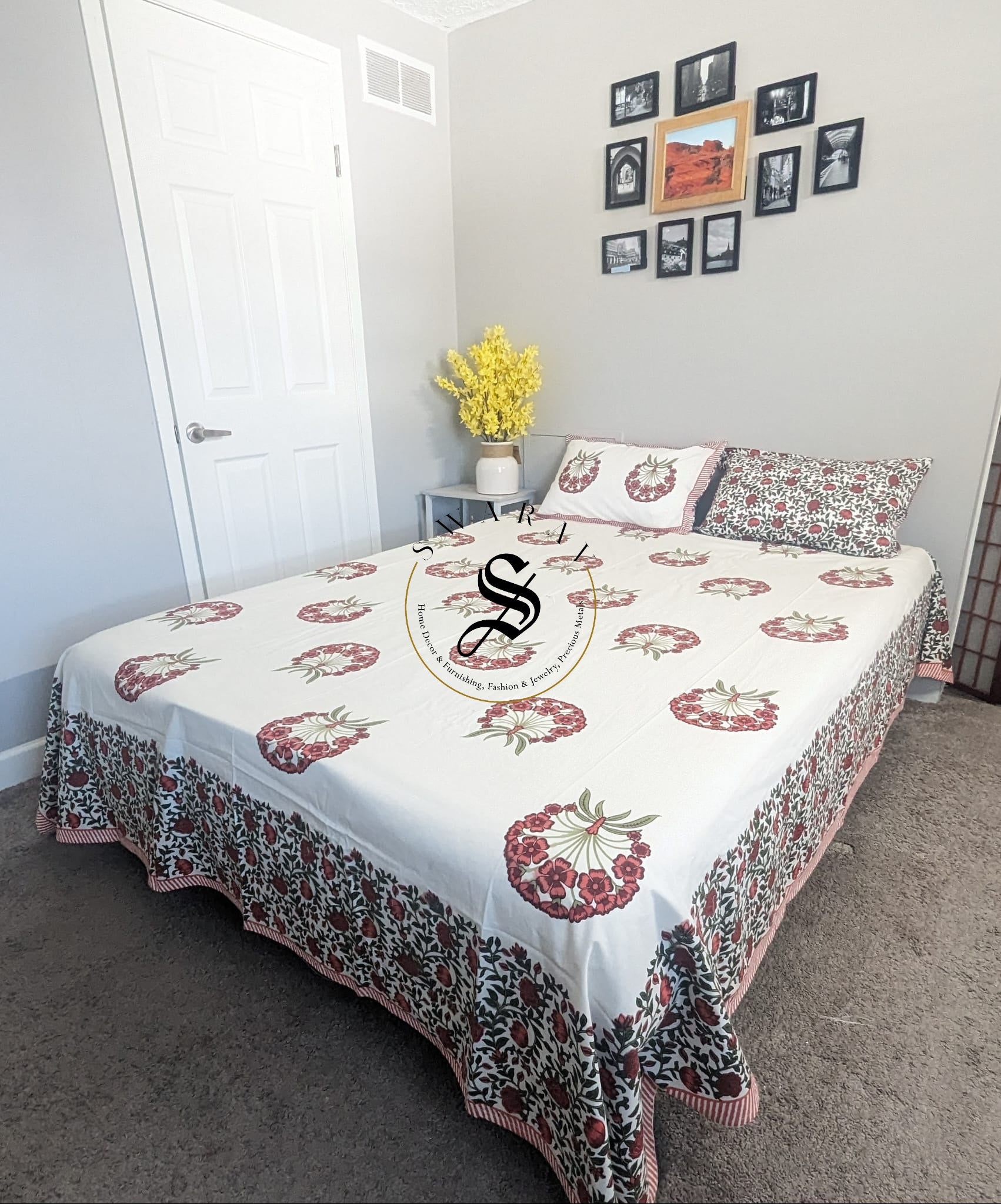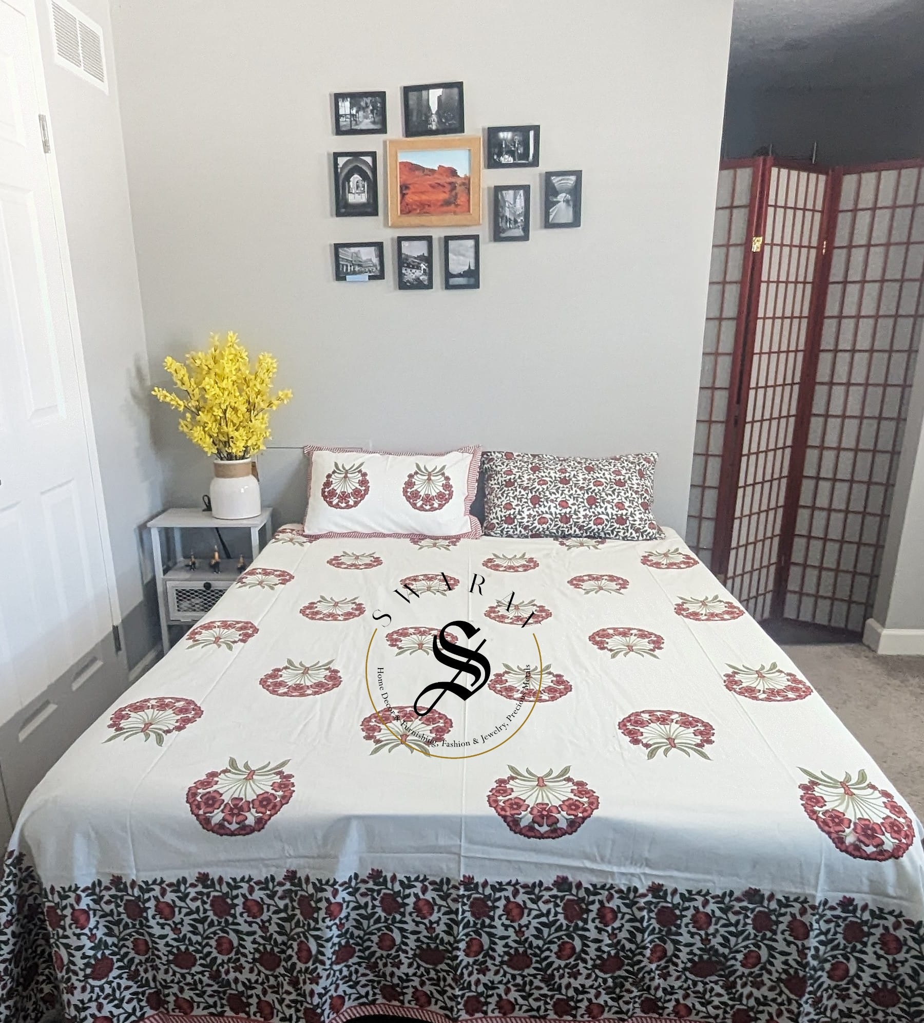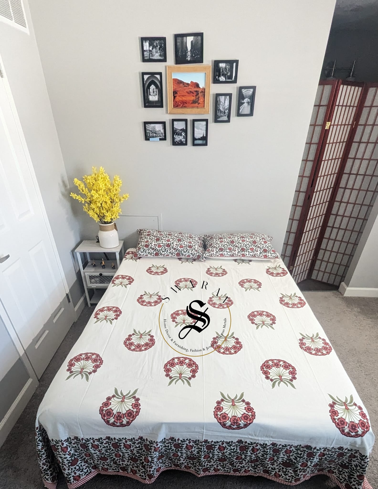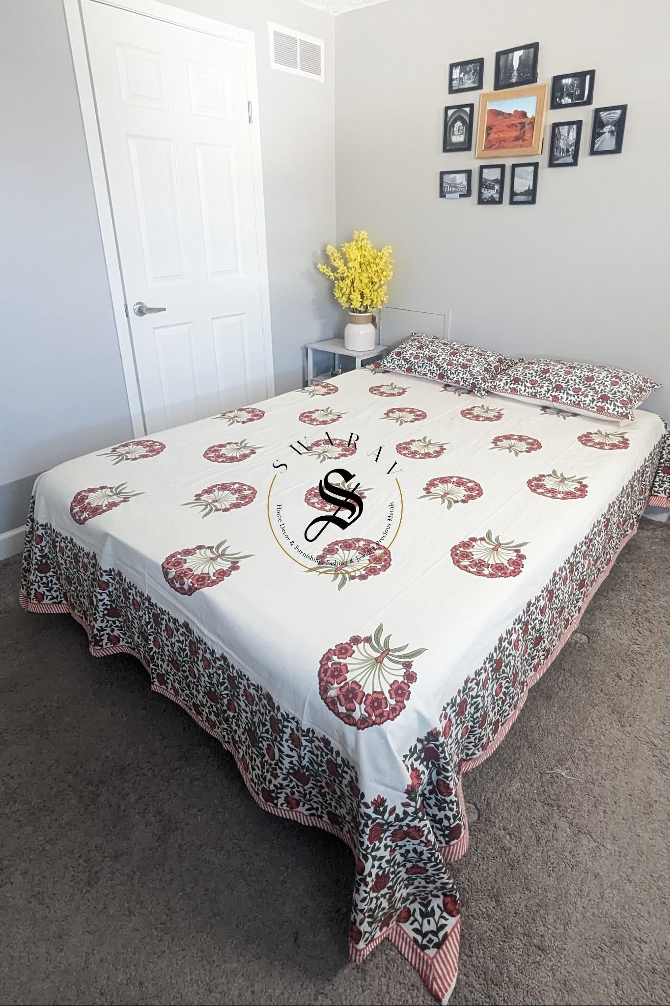 Pure cotton Jaipur Queen size Flat Bedsheet with 2 pillow covers- the soft comfortable Cotton comfort that you have been looking for in bedsheets.