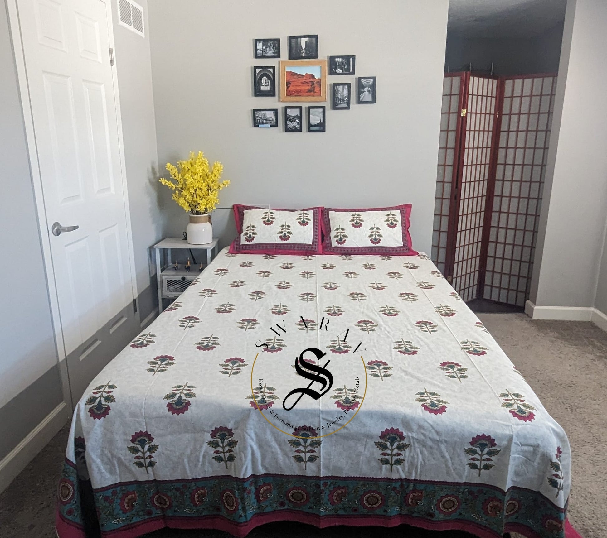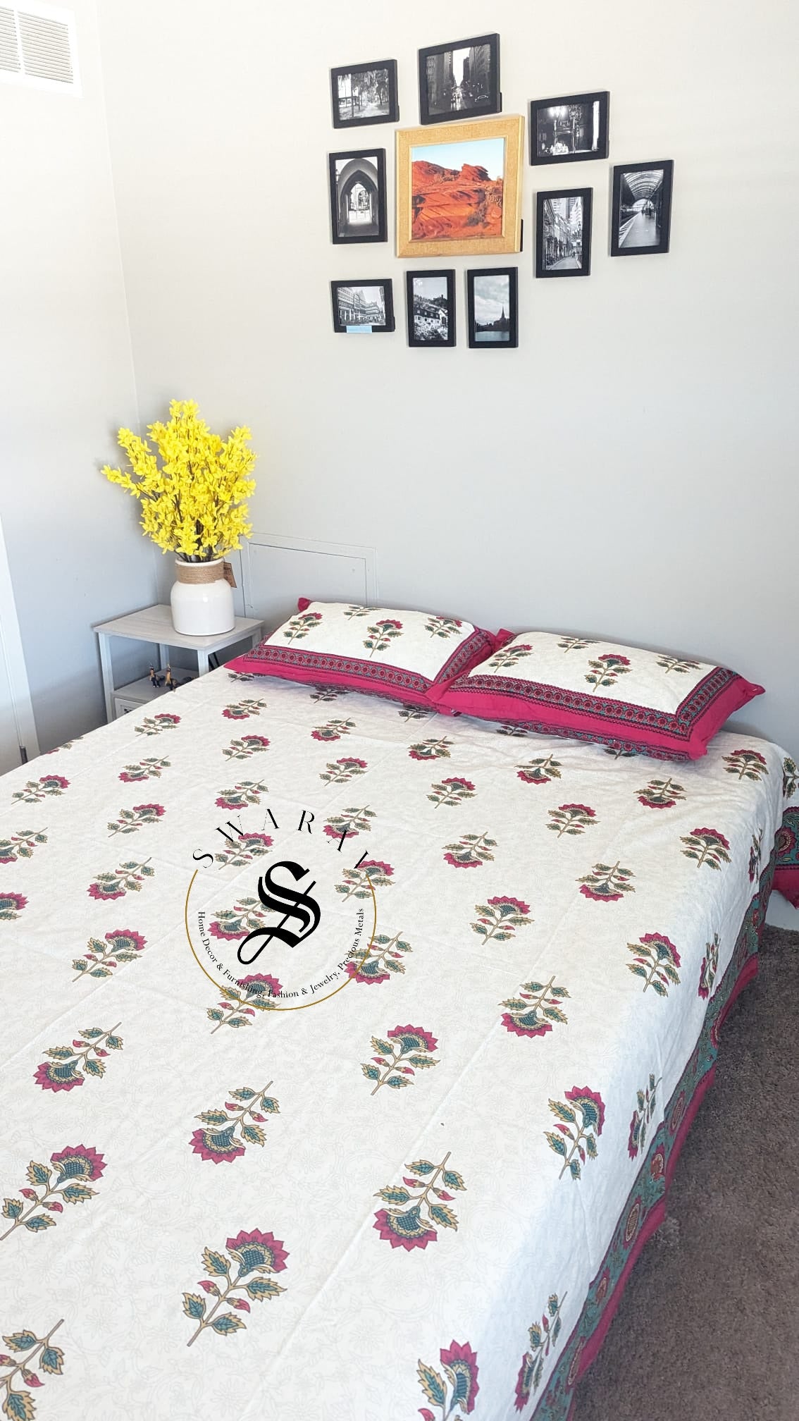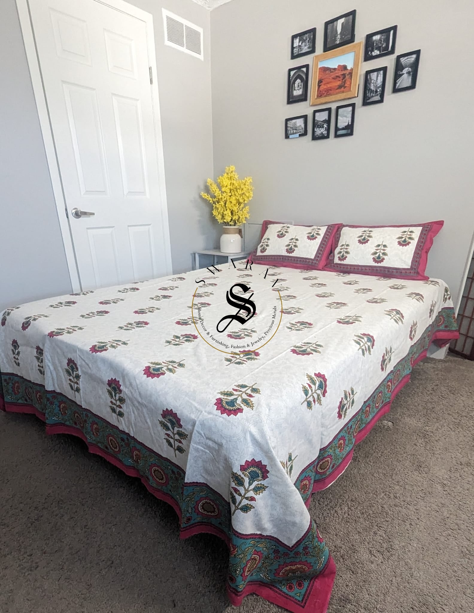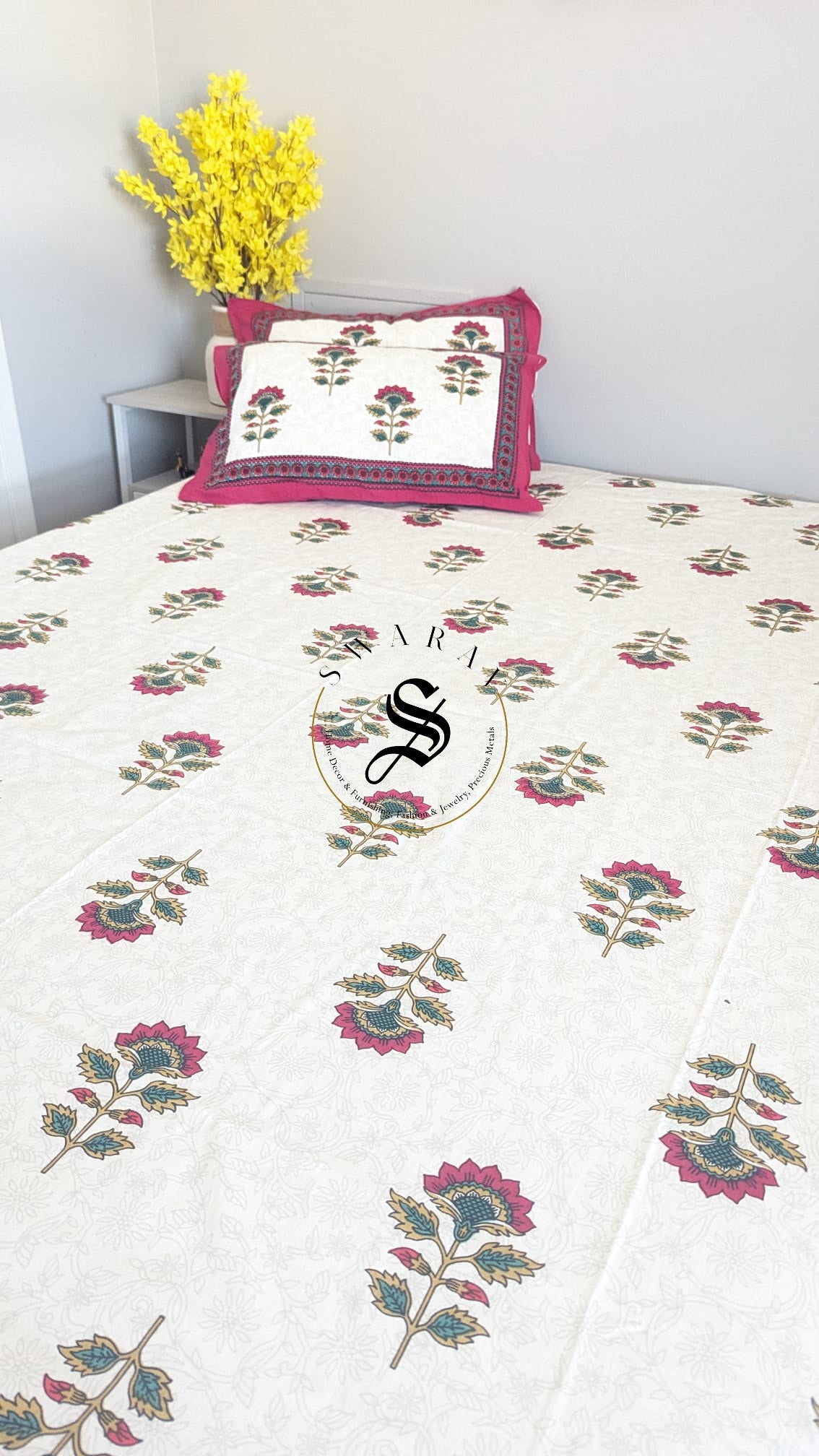 Pure cotton Jaipur Queen size Flat Bedsheet with 2 pillow covers- the soft comfortable Cotton comfort that you have been looking for in bedsheets.