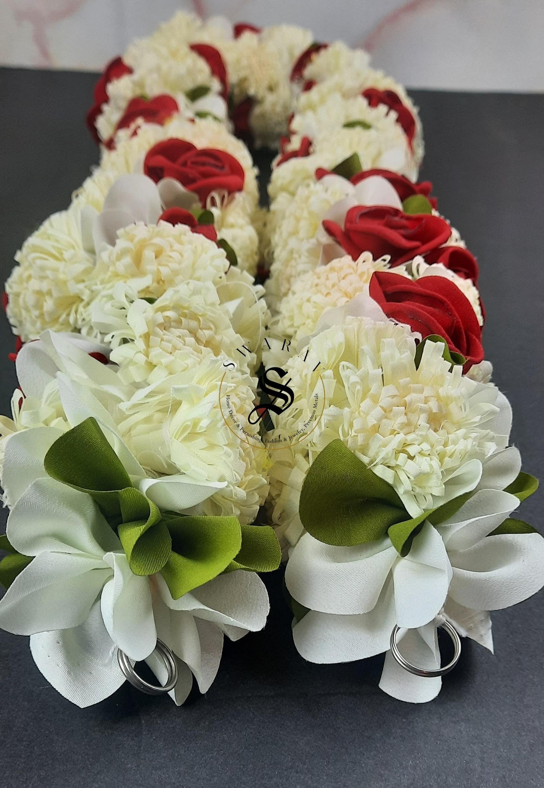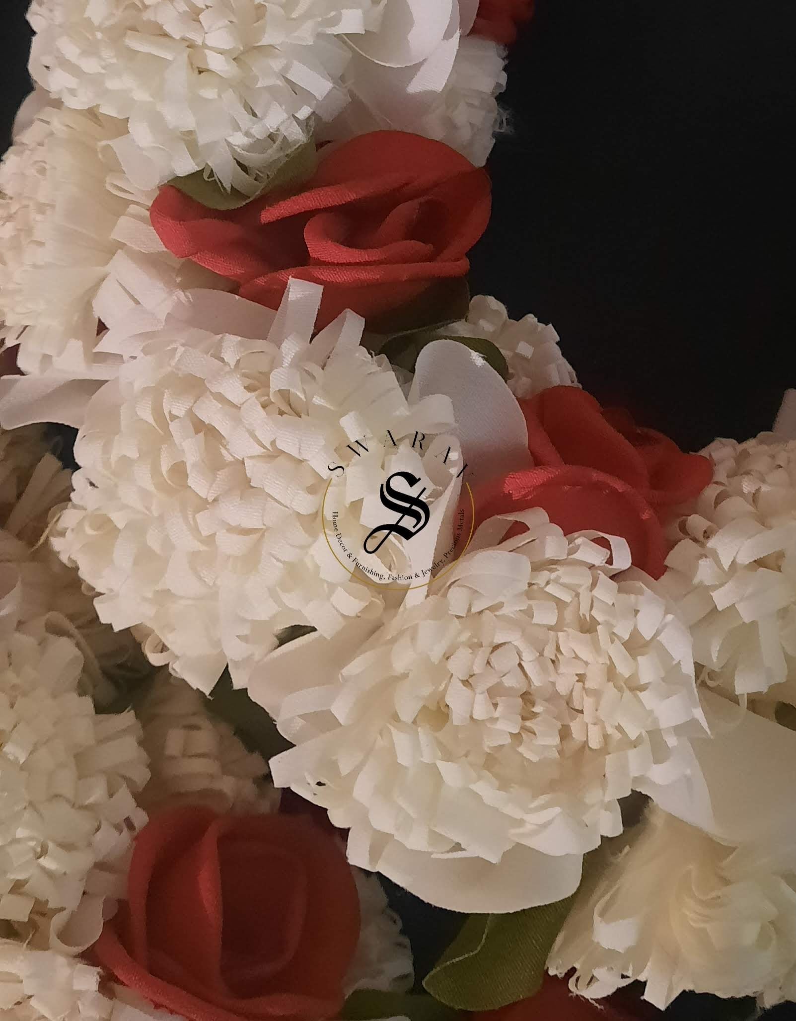 Hand made Fabric Garland/Mala - Washable and Lifetime Usable. (White and Red ). 42 inch.
