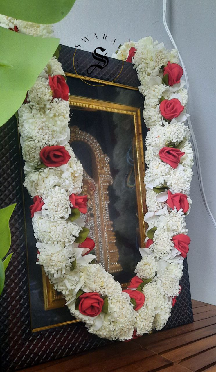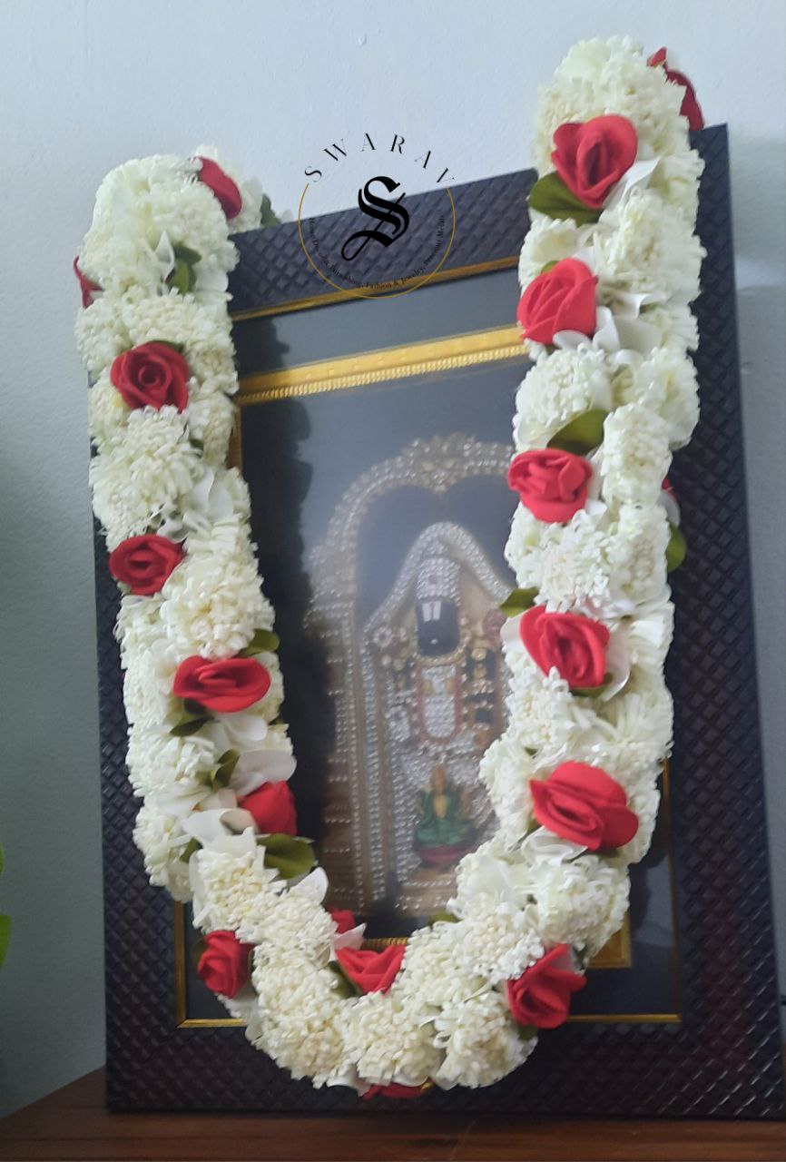 Handmade with polycotton fabric, this 42 inch mala is perfect for decorating your home, idols and divine picture frames.