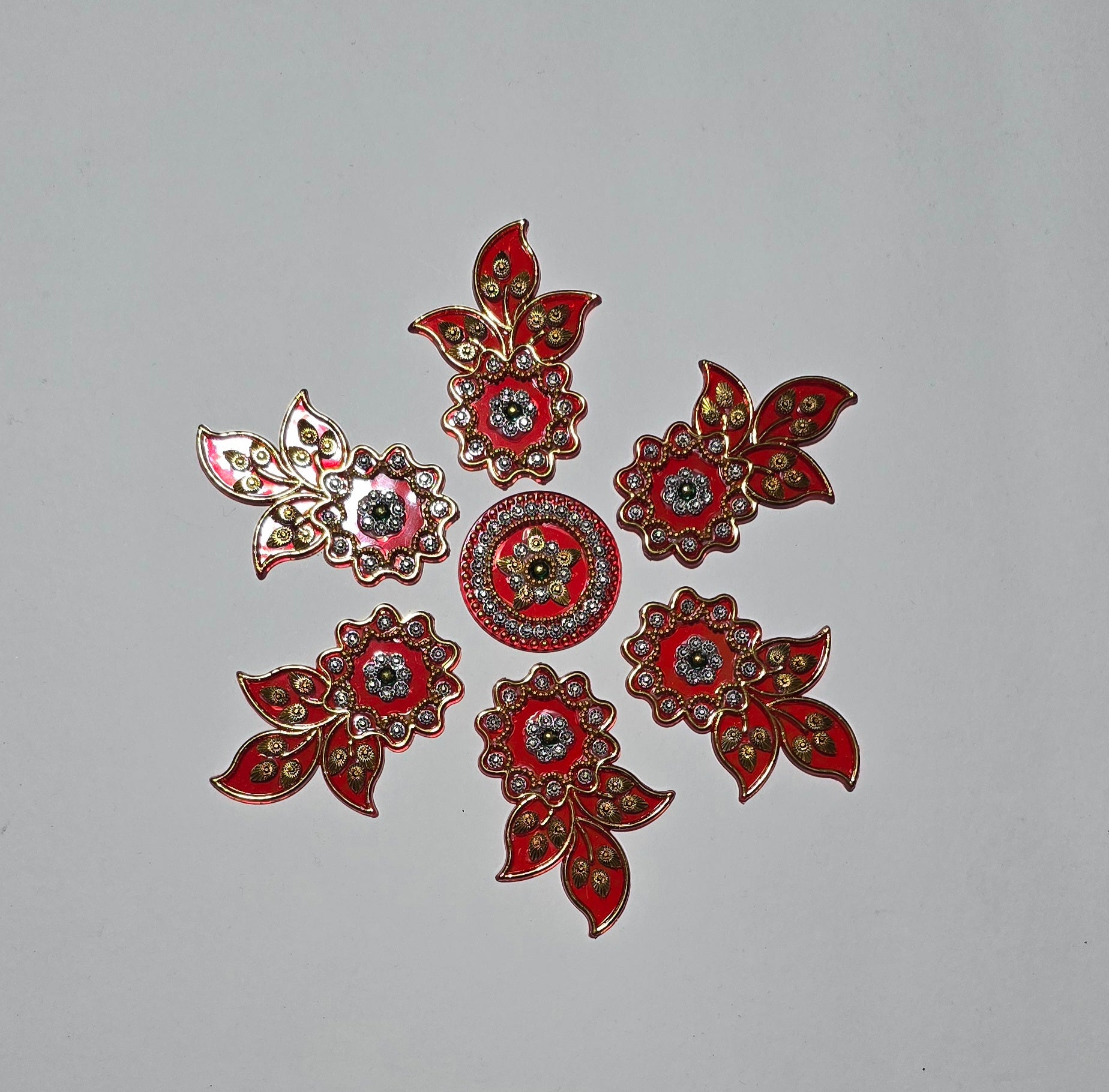 Bring home this beautiful multi color, completely hand made Acrylic Diya Rangoli set of 7 pieces to decorate your floor on special occasions.