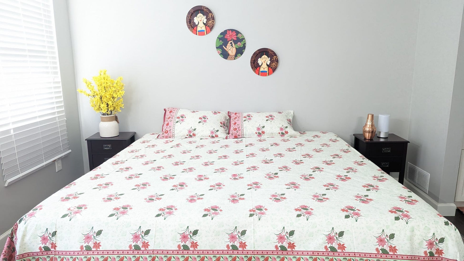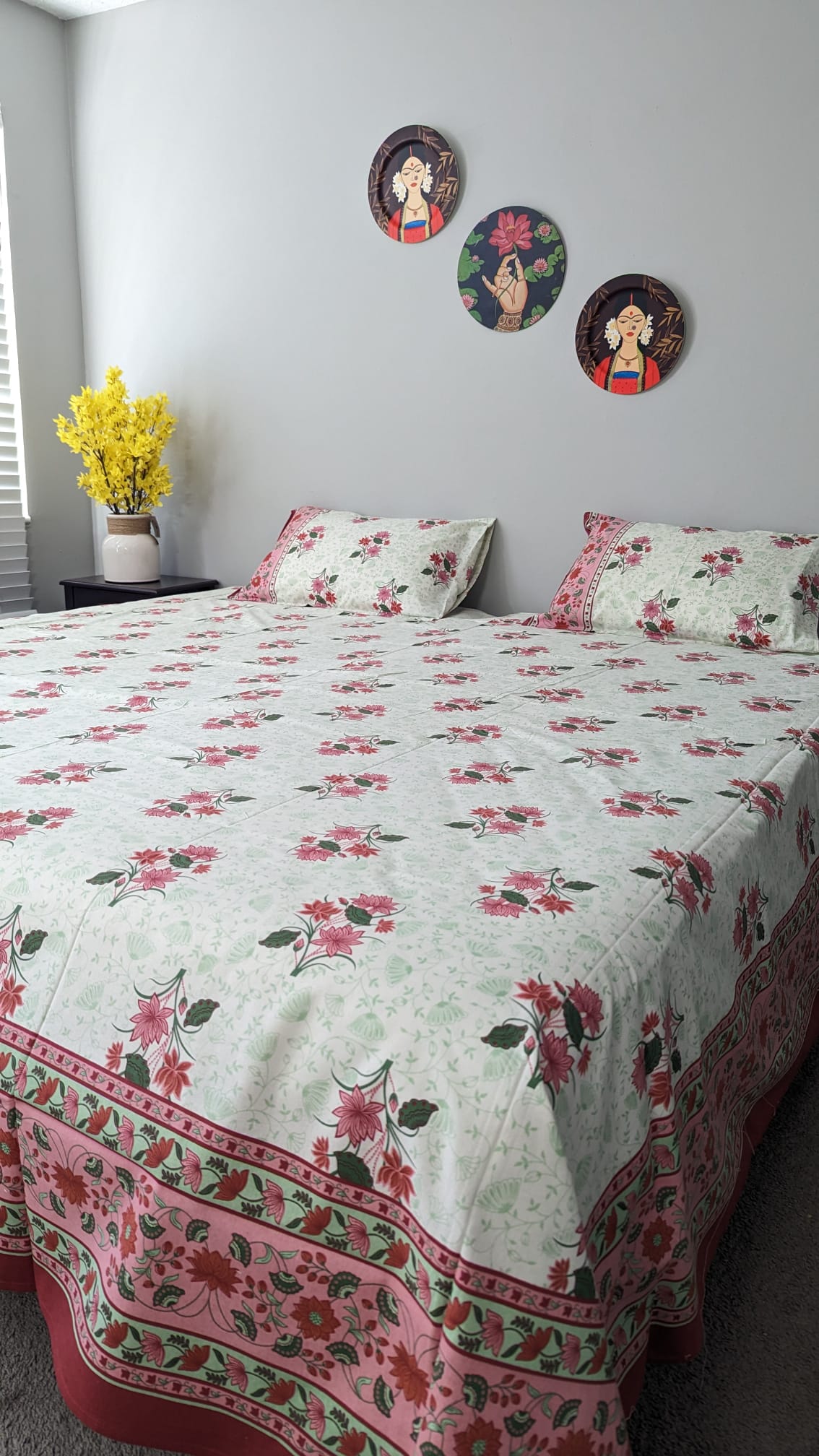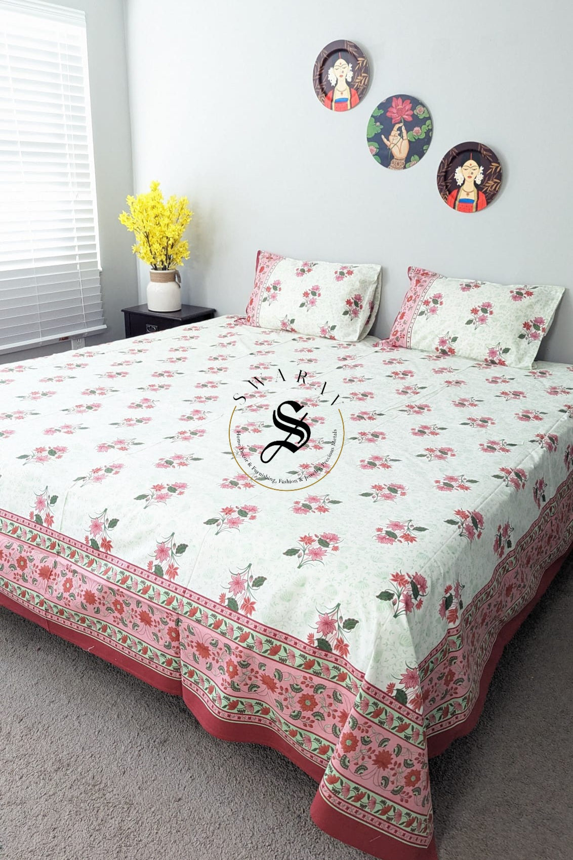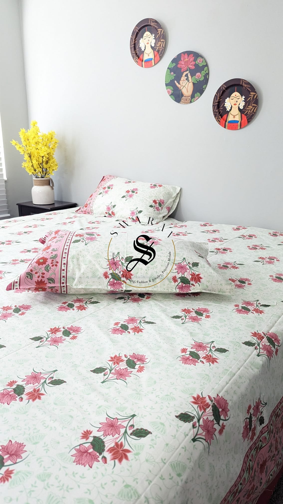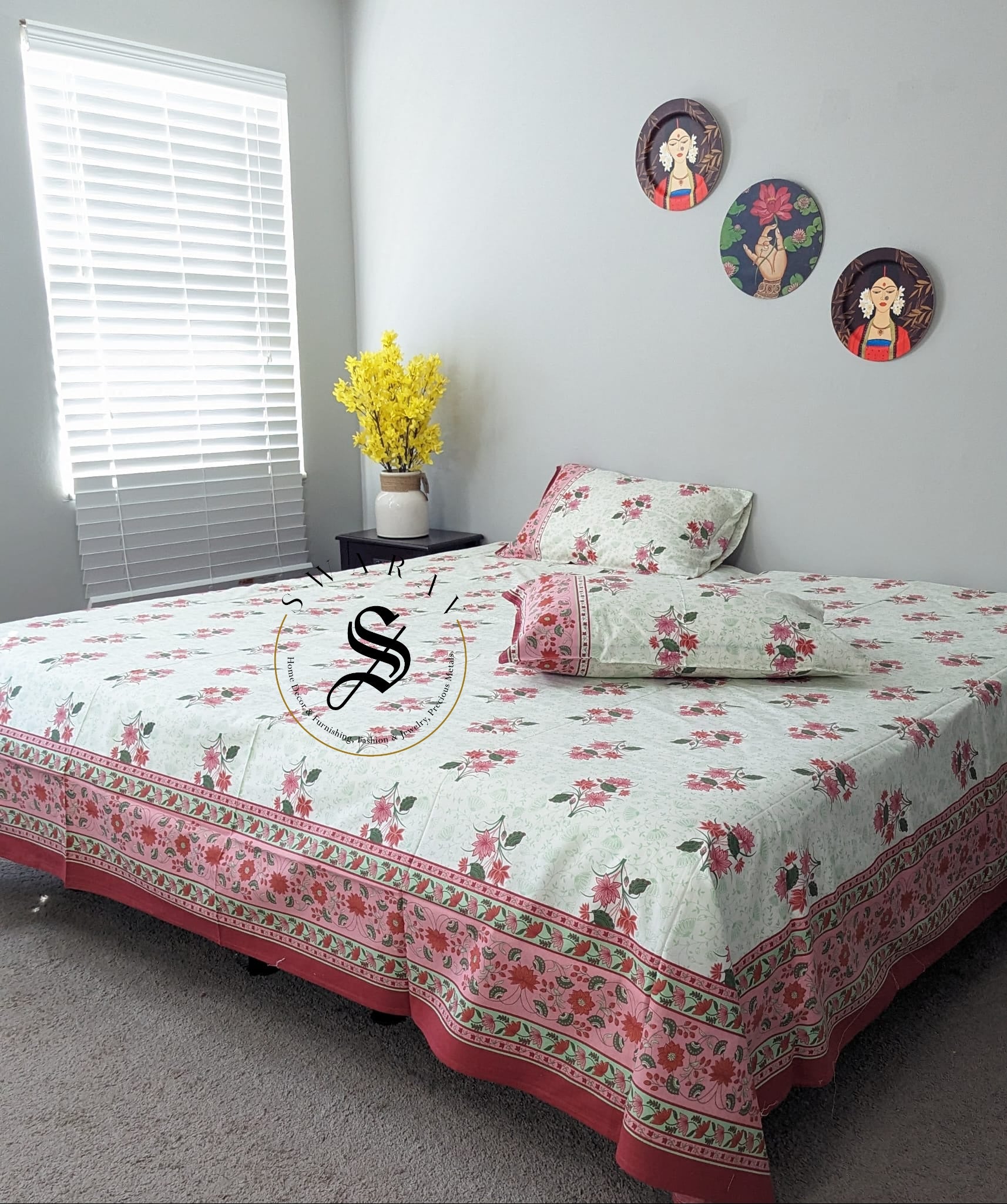 Pure cotton Jaipur King size Flat Bedsheet with 2 pillow covers- the soft comfortable Cotton comfort that you have been looking for in bedsheets.