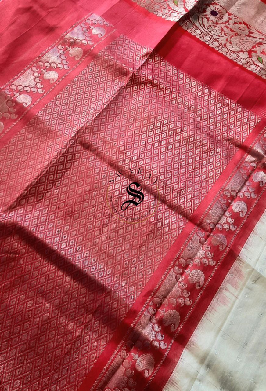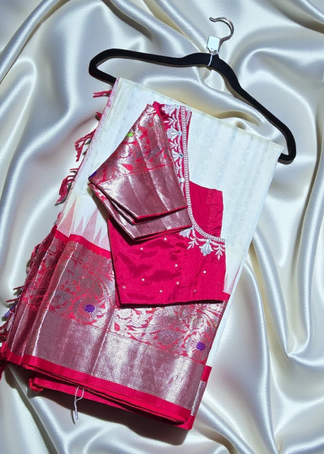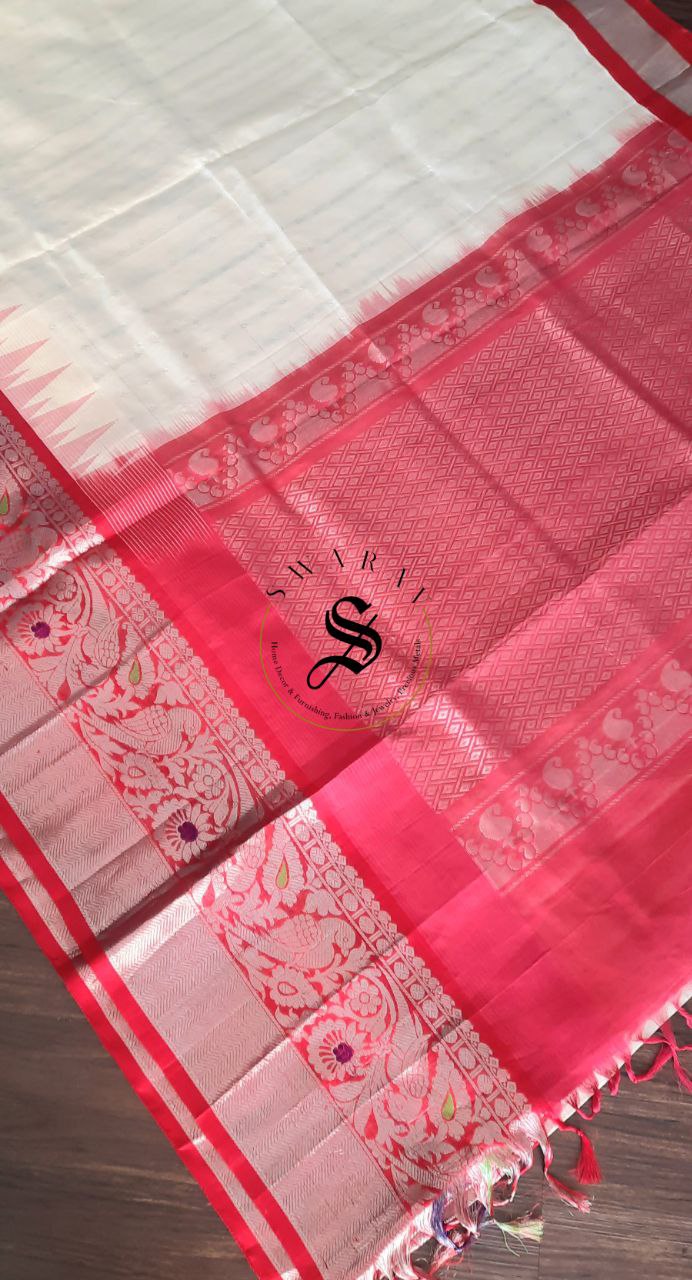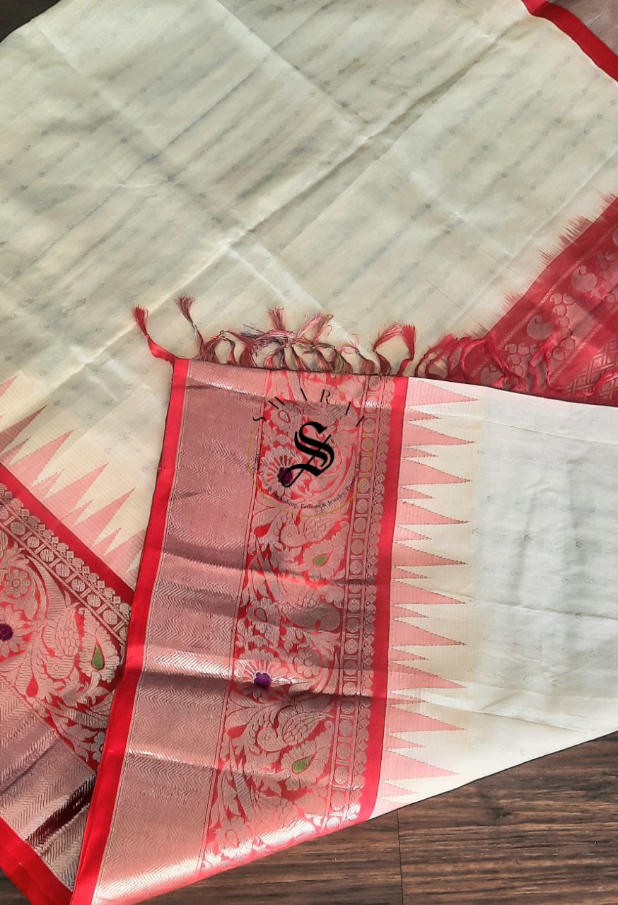 Saree Fabric - Offwhite kuppadam silk with ?ari weave buts and contrast rich zari weave pallu.